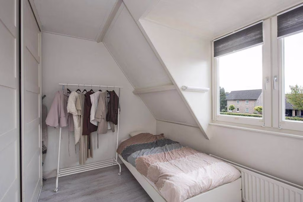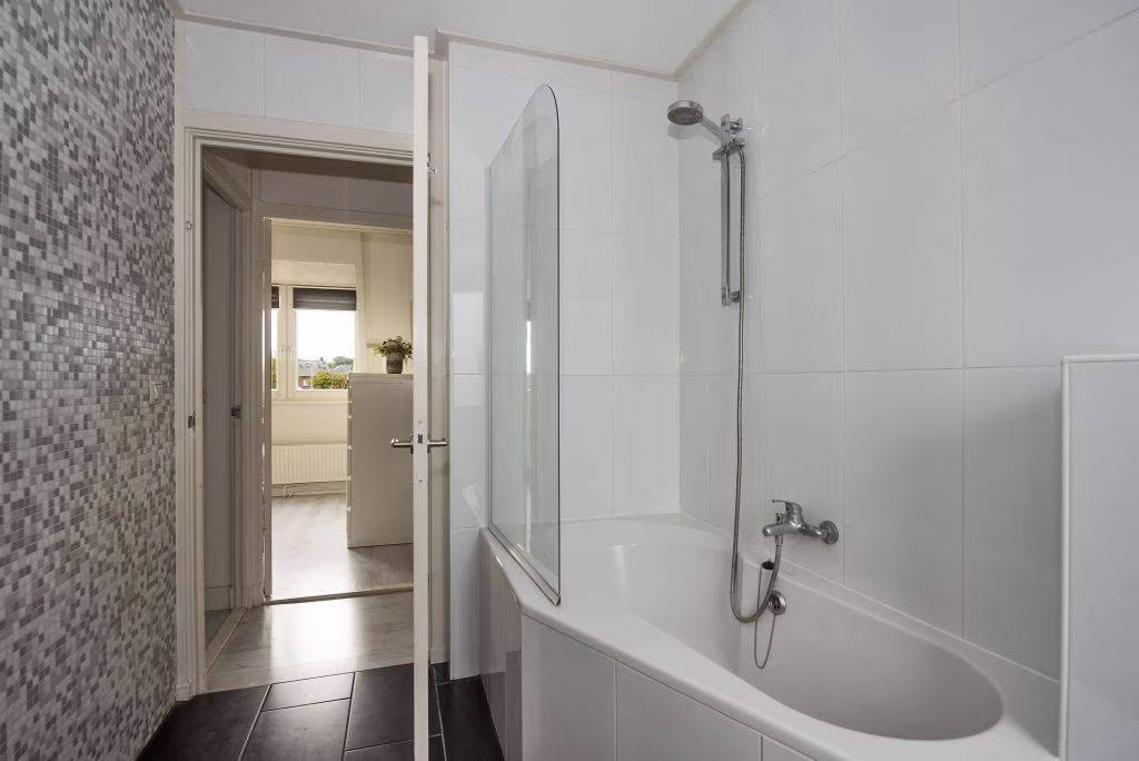 Ook boven is de woning praktisch ingedeeld, met 2 nette slaapkamers en een complete badkamer die alles biedt wat je nodig hebt.