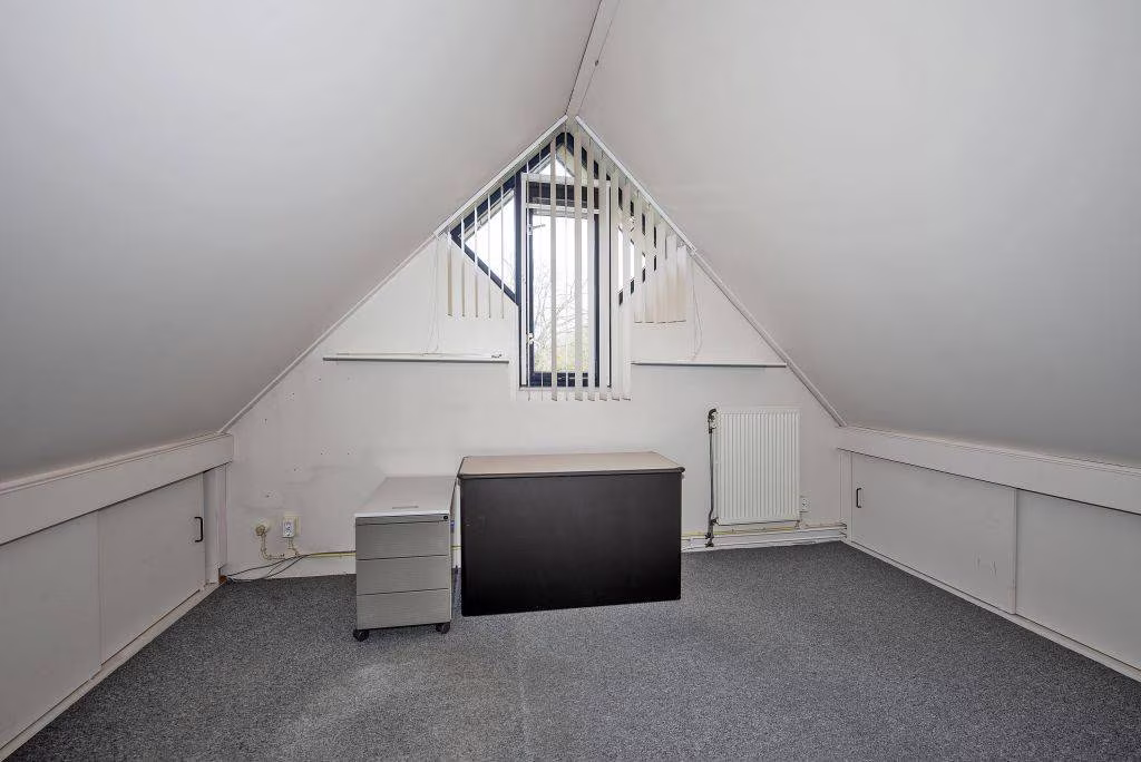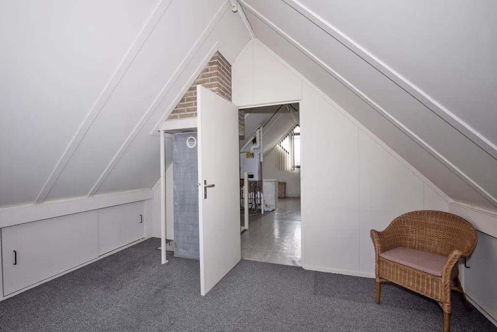 2e verdieping: via vaste trap bereikbare zolderruimte met stook- en wasmachineopstelling en zeer veel bergruimte achter de knieschotten, 4e slaapkamer met voldoende bergruimte achter de knieschotten.