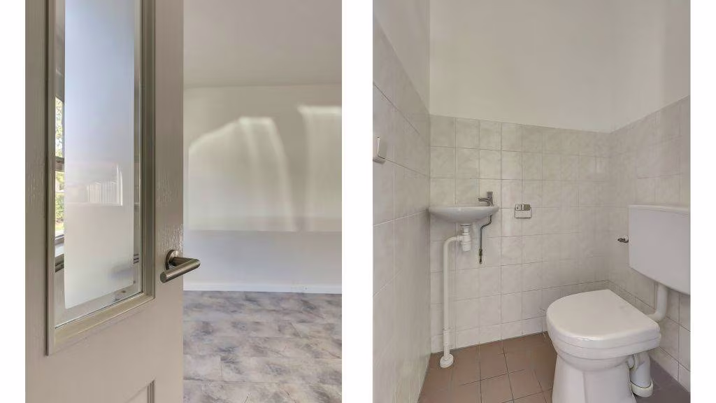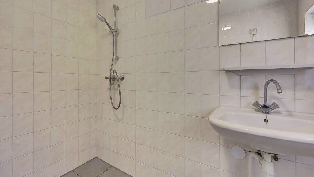 Overloop naar drie slaapkamers en badkamer welke is voorzien van douche, wastafel en wasmachine aansluiting.
