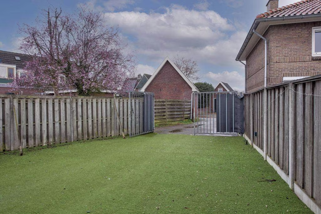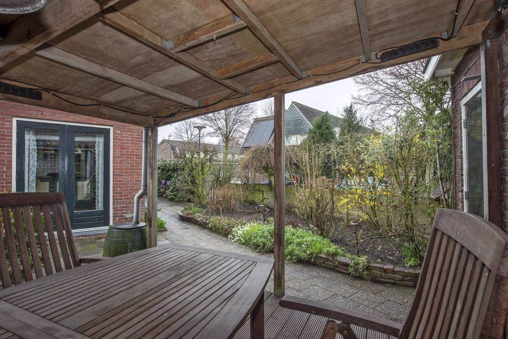 De woning beschikt over een tuin waar je heerlijk buiten kunt zitten en genieten van rust en privacy. De tuin is bovendien voorzien van een overkapping en een garage, waardoor je hier niet alleen comfortabel buiten zit, maar ook beschikt over praktische extra ruimte voor opslag of voor fietsen.