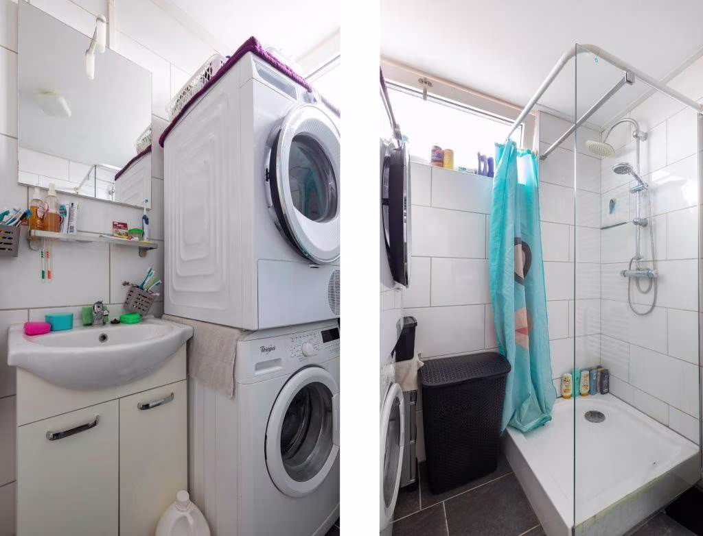 Overloop, CV-ruimte, vaste kast, drie mooie slaapkamers, badkamer met douche, wastafel en wasmachine aansluiting.