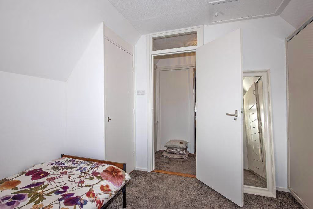Overloop, twee ruime slaapkamers, beide met bergruimte achter de knieschotten.