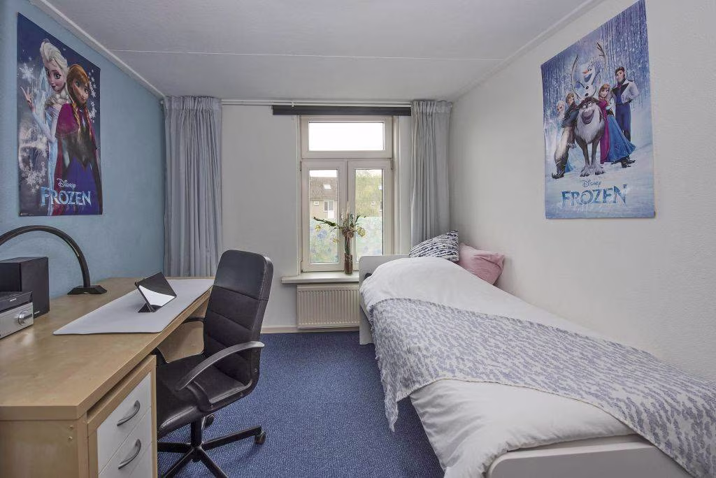- Drie slaapkamers (± 14, 10, en 5 m²) waarvan twee met vaste kastruimte.