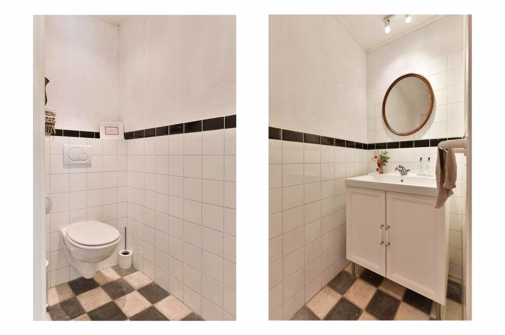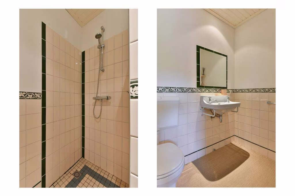 Begane grond: Gedeelde hal/entree, waskamer, woonkamer met slaapkamer en doucheruimte, keuken, kamer met doucheruimte v.v. extra toilet.