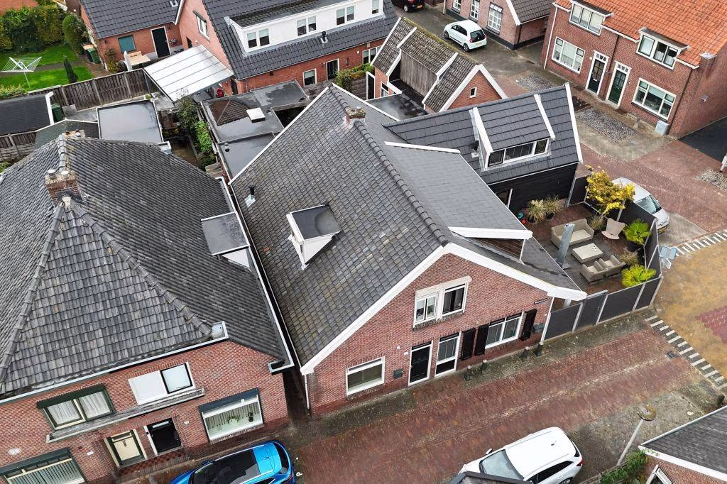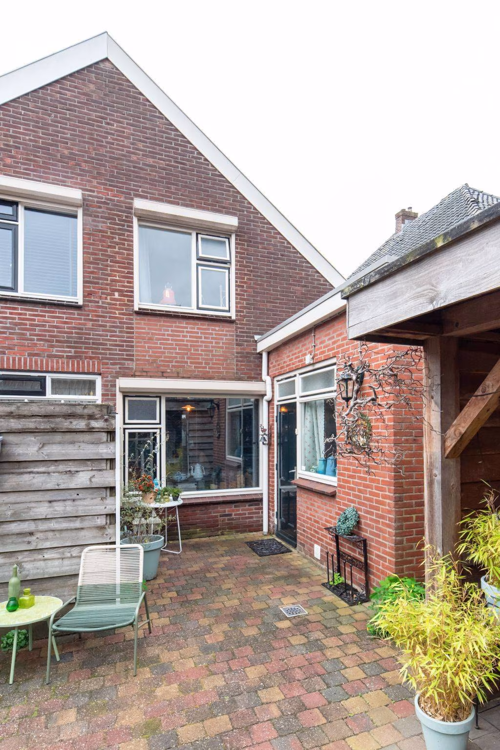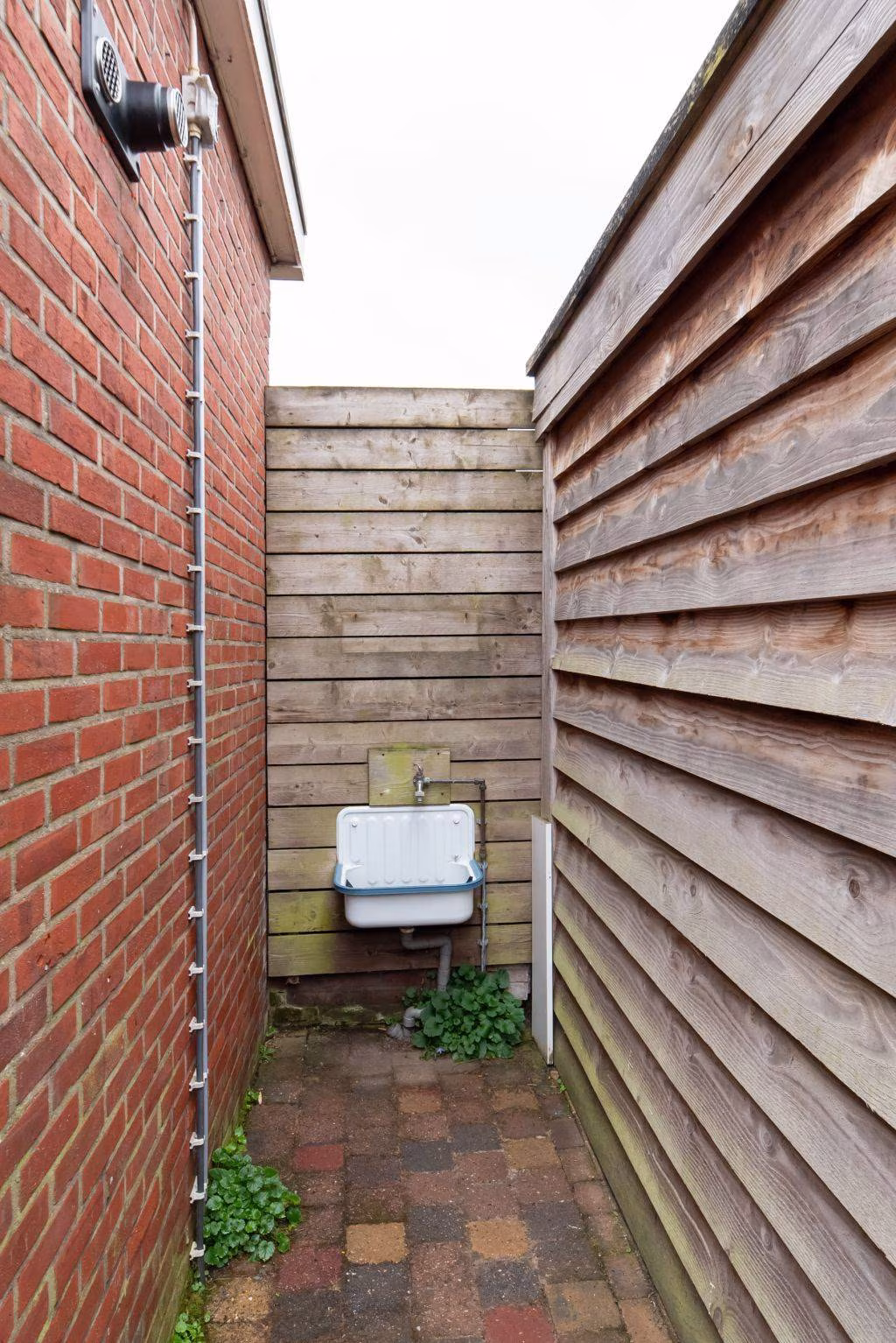 De achtertuin is onderhoudsarm aangelegd en beschikt over een fraaie L-vormige overkapping — een heerlijke plek om in de zomer buiten te zitten. Achterin de tuin staat een grote vrijstaande garage, ideaal voor hobby’s, opslag of natuurlijk de auto.