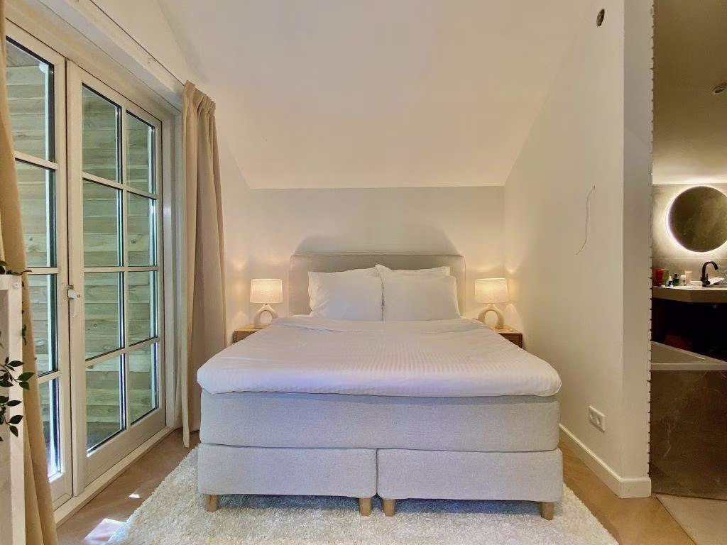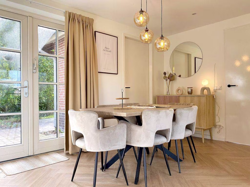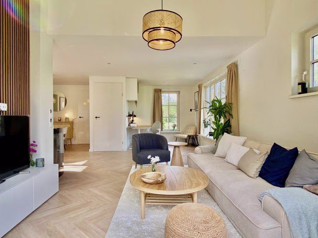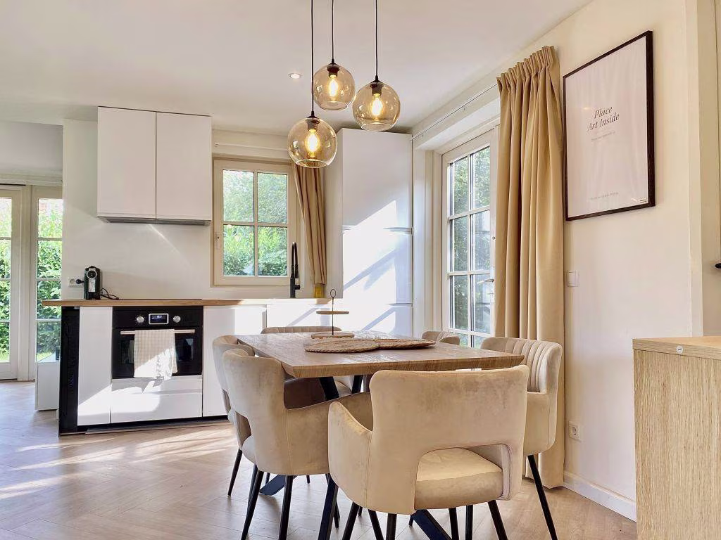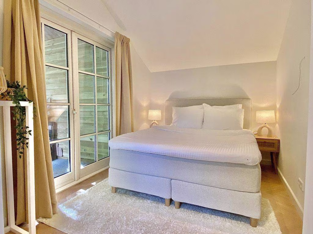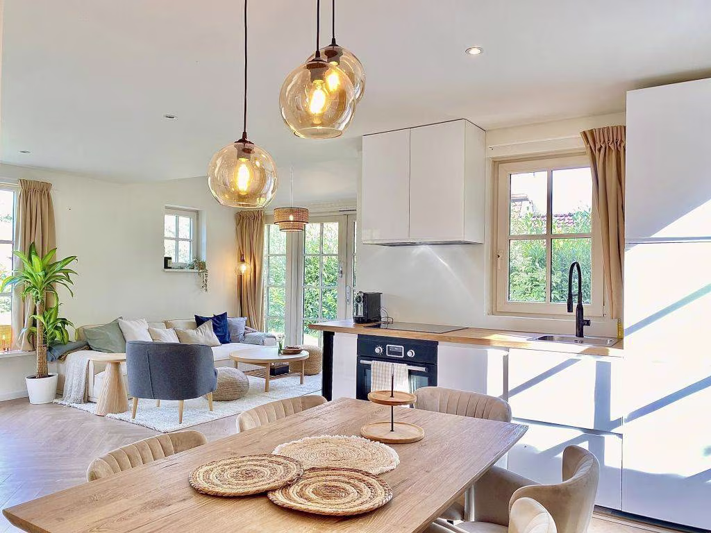 De woning is recent stijlvol ingericht en biedt een lichte, open leefruimte met een fijne zithoek, moderne keuken, luxe eethoek en openslaande deuren naar de tuin. Alsof je in een woontijdschrift stapt. Extra fijn: er zijn twee luxe badkamers, dus nooit gedoe wie er eerst mag douchen na een dagje wandelen, fietsen of zwemmen.