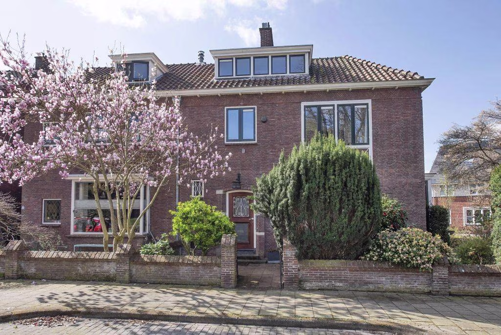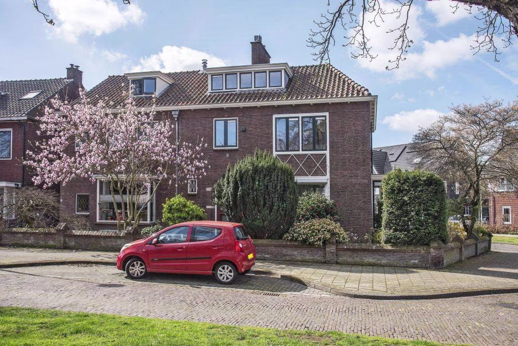 Op de hoek van het groene Buitenzorgplein en de Floresstraat, in de geliefde wijk ’t Hogeland, staat deze markante 2-onder-1-kapwoning.