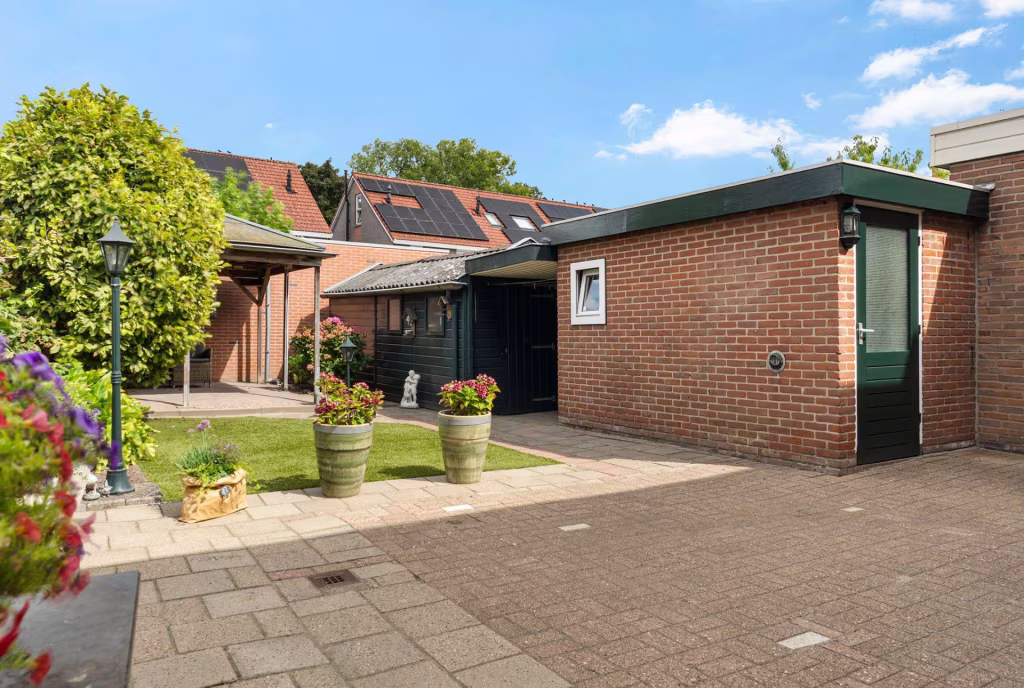 Parkeren is makkelijk met ruimte voor twee auto's op eigen terrein, inclusief een carport en oprit. Je hebt dus altijd voldoende parkeergelegenheid direct bij de woning.