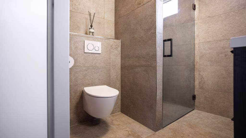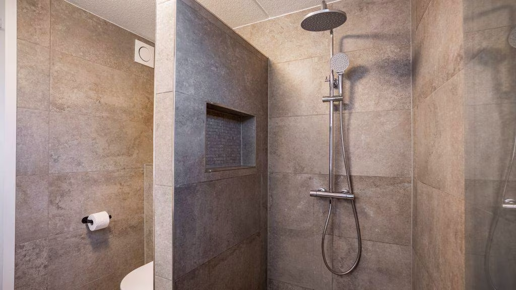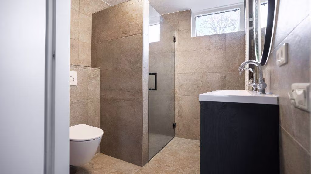 Overloop met toegang tot drie ruime slaapkamers. De moderne badkamer is strak en eigentijds afgewerkt en beschikt over een tweede toilet, een inloopdouche en een dubbel wastafelmeubel.