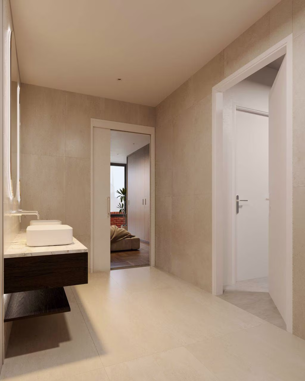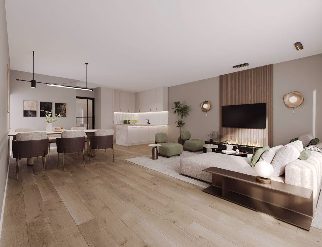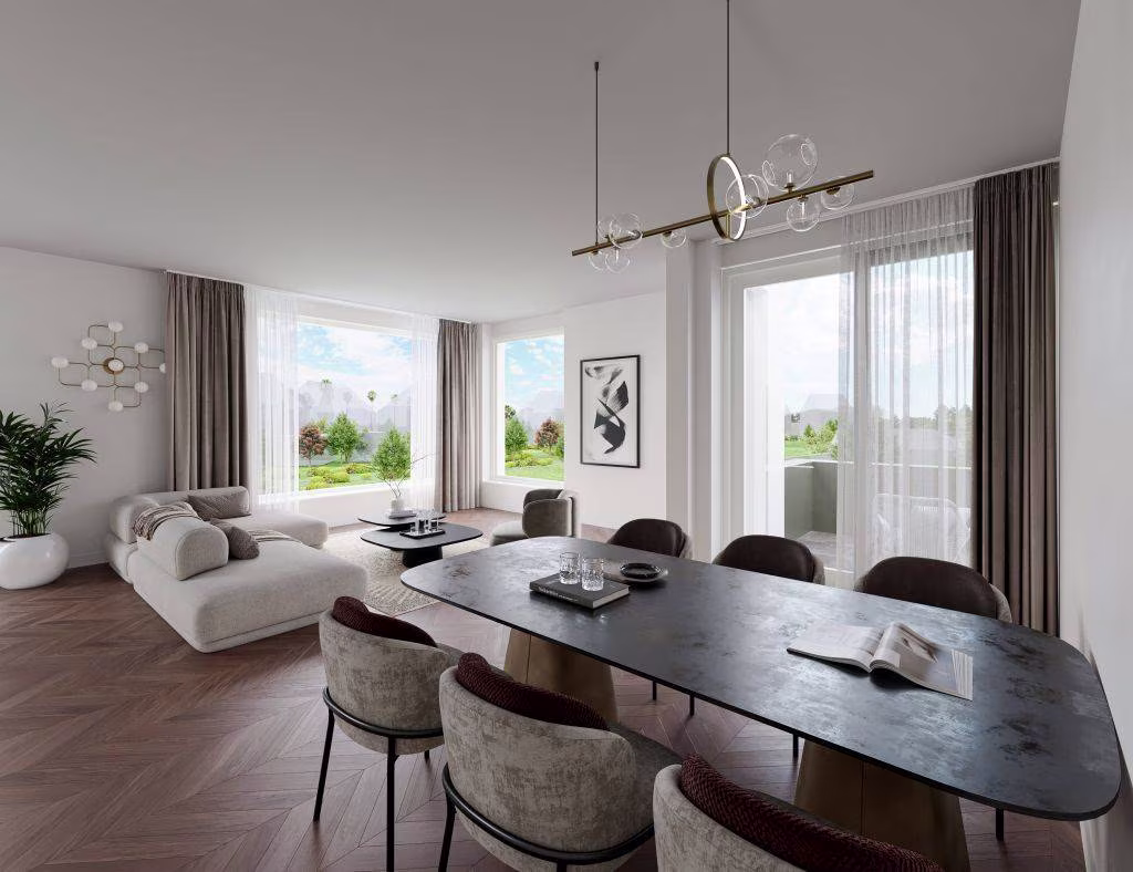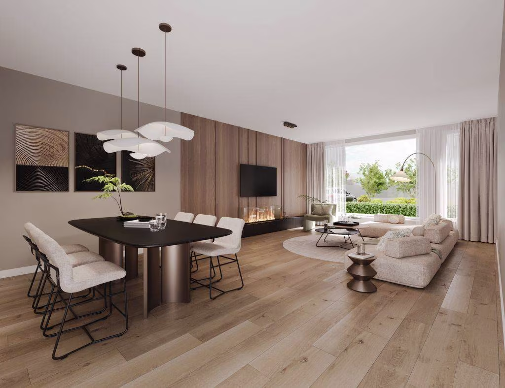 De afwerking is van hoog niveau: hoogwaardige materialen, luxe sanitair en tegelwerk en een keuken stelpost van €10.000,- zorgen voor een moderne uitstraling en een verfijnd wooncomfort. Het gebouw telt twee woonlagen en wordt architectonisch gekenmerkt door het gebruik van warme baksteen, grote raampartijen en subtiele horizontale lijnen die zorgen voor rust en elegantie.