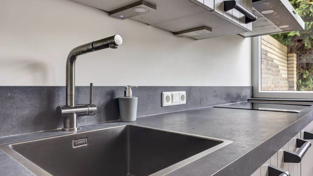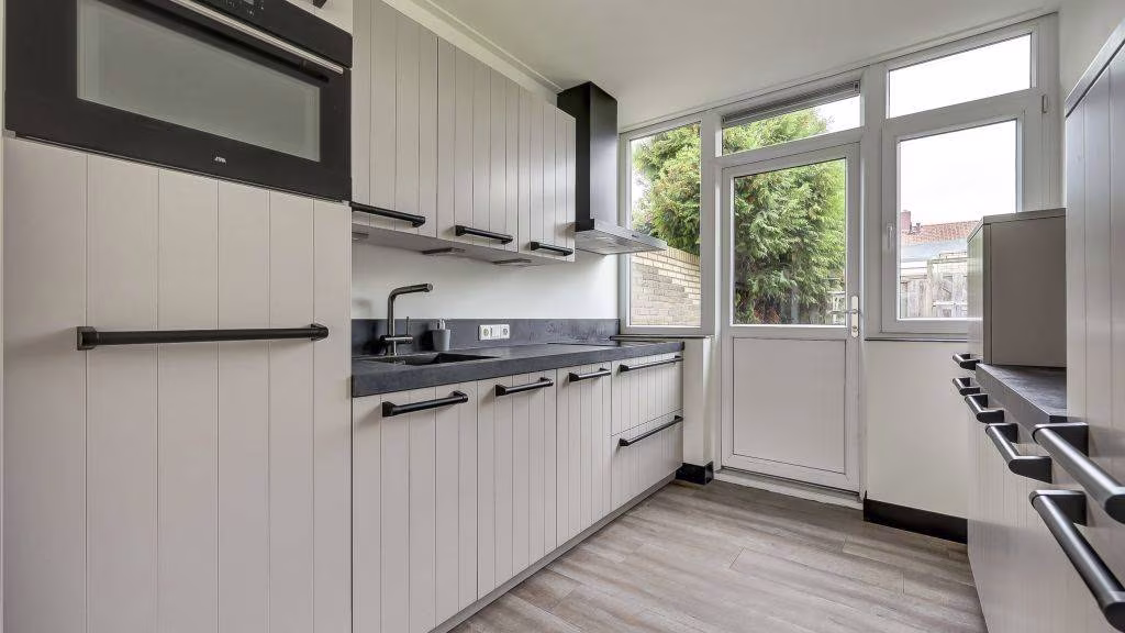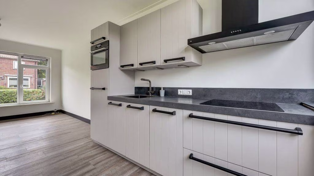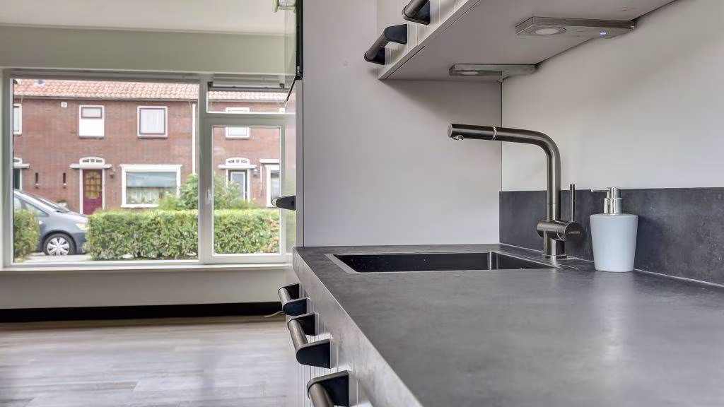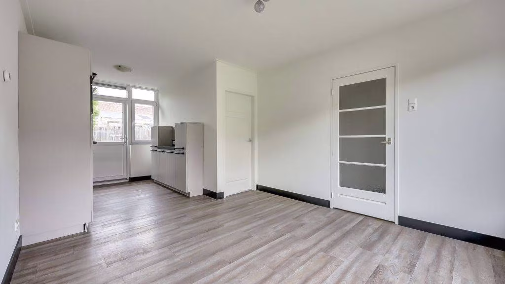 Entree, hal, toegang tot de woonkamer, gesitueerd aan de voorzijde met open keuken aan de achterzijde. De keuken is modern en compleet voorzien van diverse inbouwapparaten. De slaapkamer bevindt zich aan de achterzijde met verbinding naar de nette badkamer. Vanuit de hal zijn het separate toilet en de ruime berging met stookruimte te bereiken, welke ook kan dienen als extra kamer.