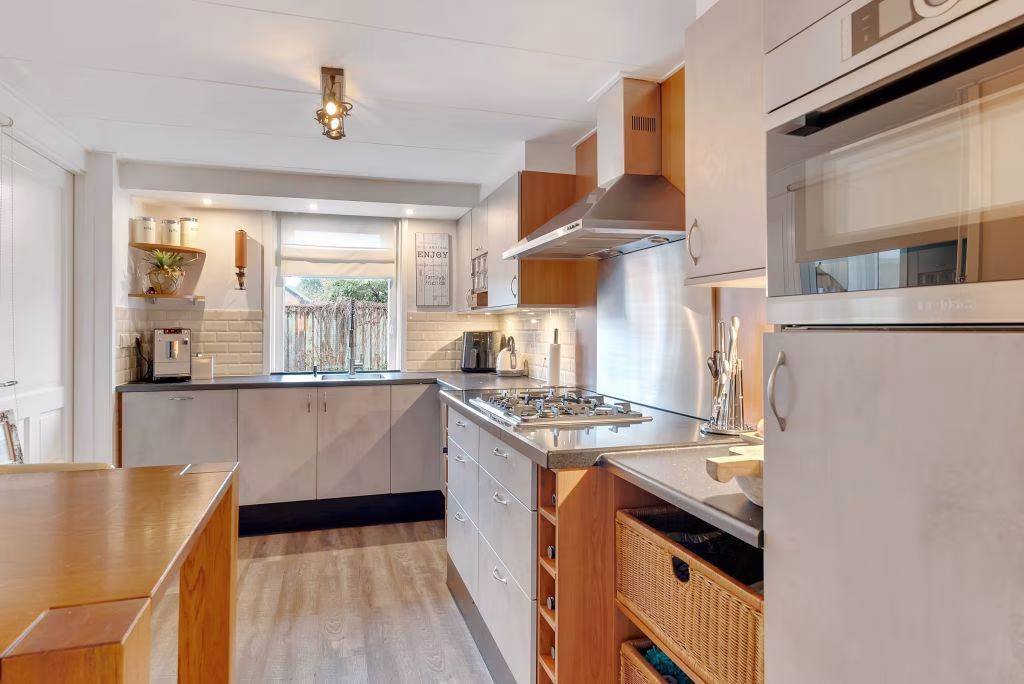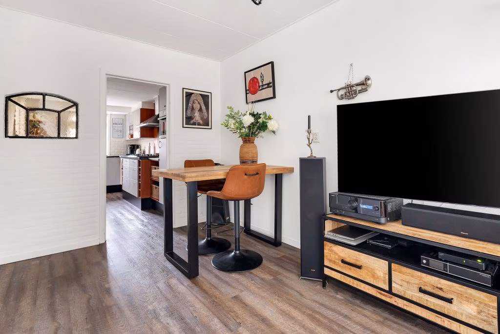 De keurige woning is op de begane grond uitgebouwd waardoor meer ruimte in de woonkamer is ontstaan en een (woon)keuken gerealiseerd kon worden. Op de verdiepingen vinden we drie slaapkamers, de moderne badkamer en een handige bergzolder.
