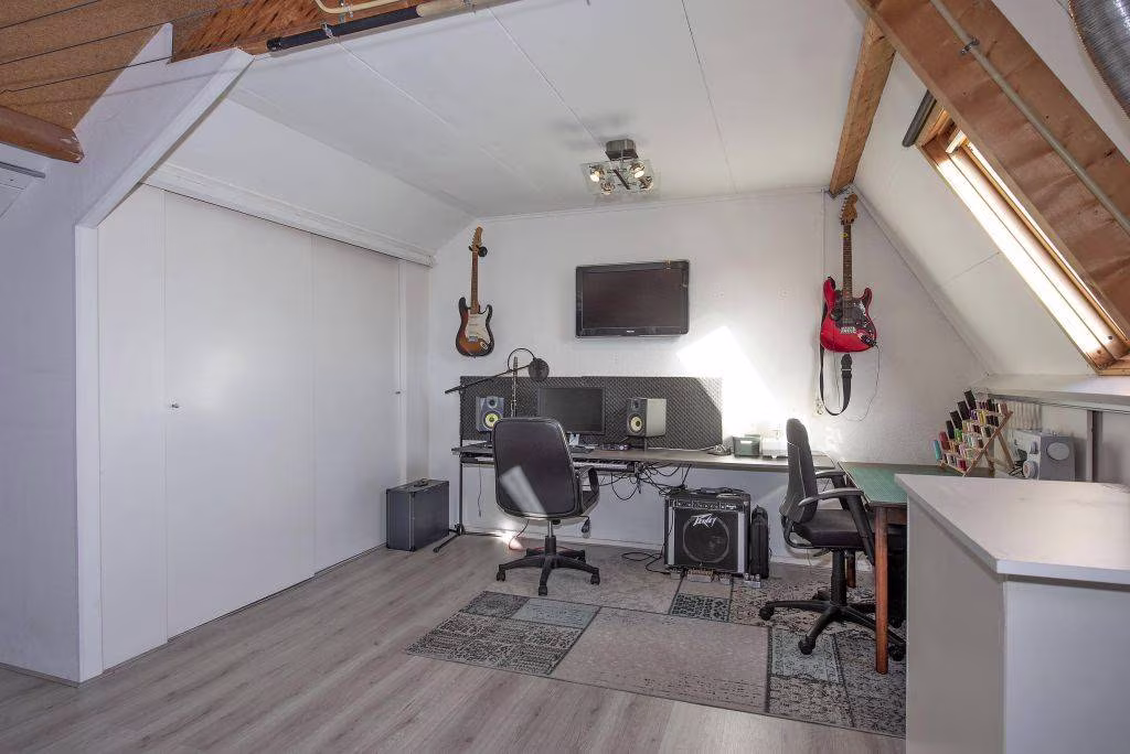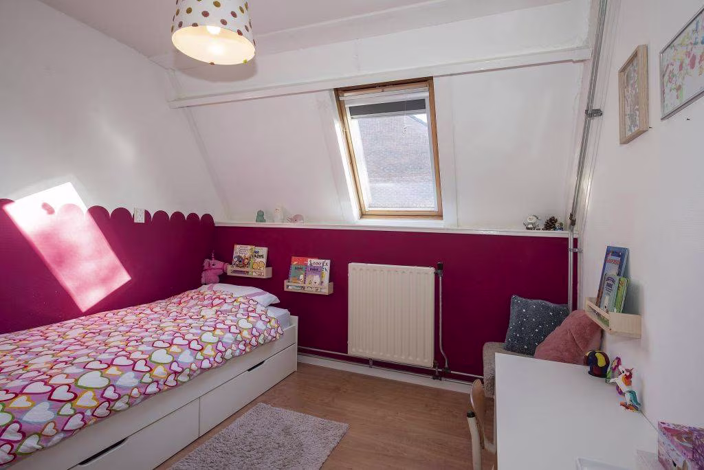 Tweede verdieping: zolderkamer met dakraam, te gebruiken als extra slaapkamer, werkruimte of hobbykamer. Bergruimte aanwezig.