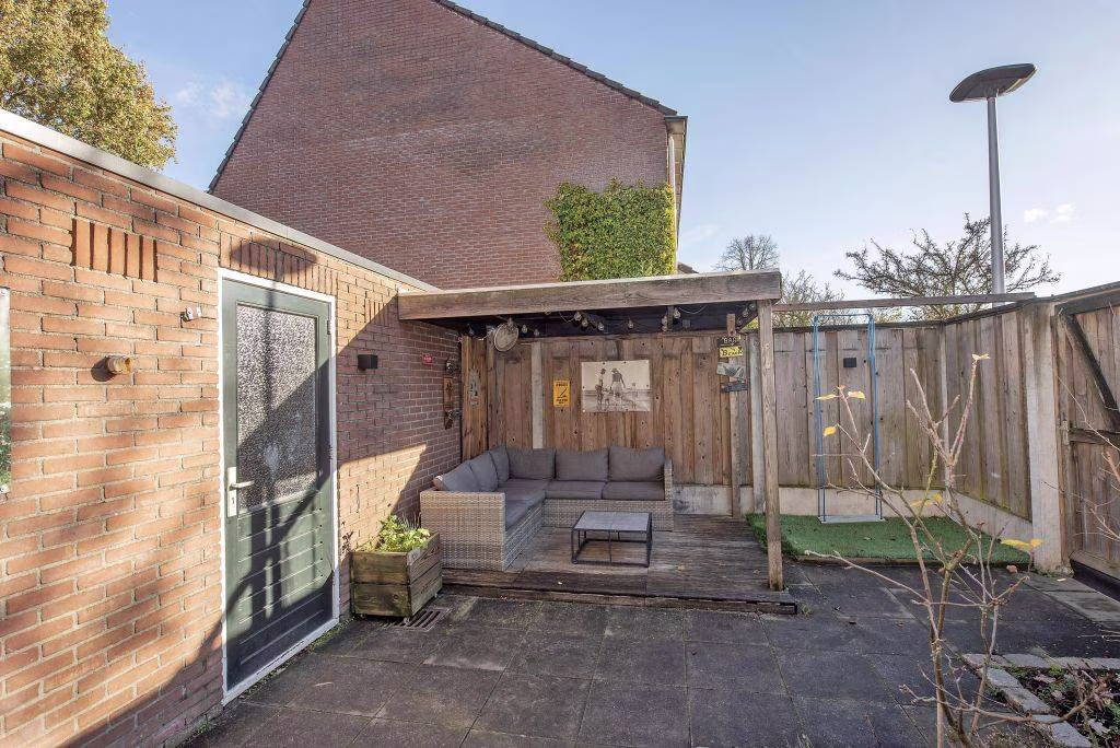 De achtertuin is onderhoudsvriendelijk aangelegd en biedt alle ruimte voor loungen, tuinieren of spelen. De tuin beschikt over een terras met zonnescherm en een houten overkapping. Vanuit de tuin heb je toegang tot de berging en er is een achterom aanwezig.