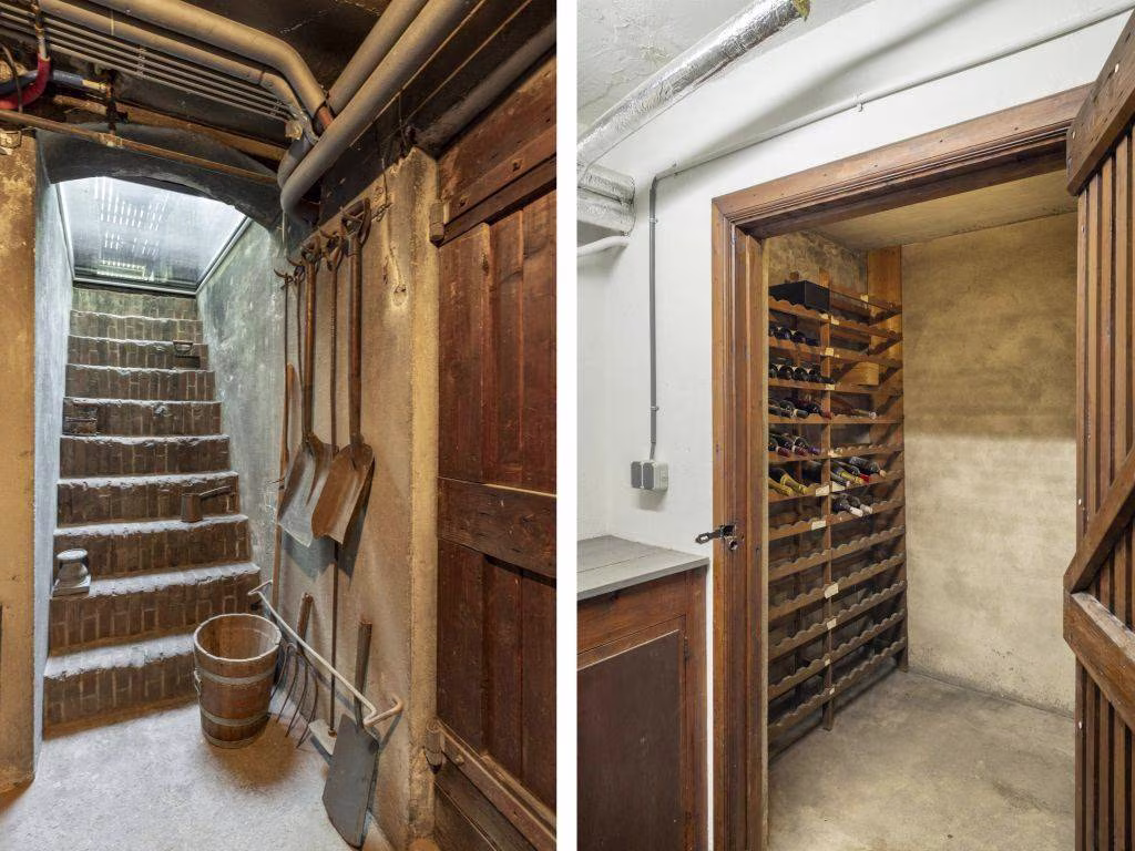 De corridor richting woonkeuken was en is in gebruik als provisieruimte. Opslag van boodschappen dus. Voor we doorlopen, even een zijsprong naar een deur die naar de kelder leidt. Met een koele provisieruimte, wijnopslag en cv-ruimte. De stenen trap naar buiten is afgesloten en de opening is afgedekt met een oersterke glasplaat. Voor een bijzonder inkijkje vanaf de veranda.