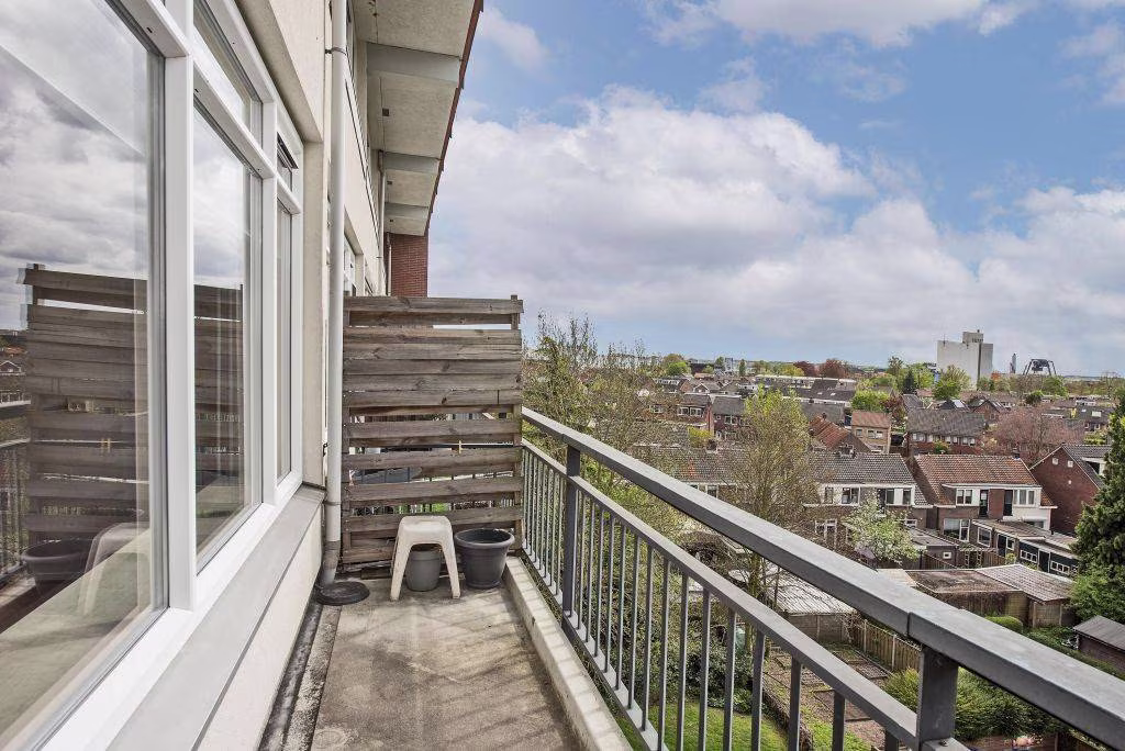 Vanuit de woonkamer heb je toegang tot het balkon. Een fijne plek om even naar buiten te stappen, of om een zitje te creëren waar je op rustige momenten van de buitenlucht geniet.