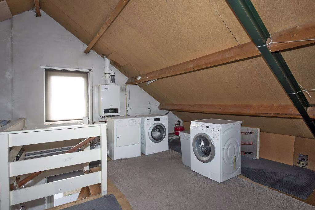 2e verdieping: middels vaste trap bereikbare open zolderruimte met zijraam, stook- en wasmachine-opstelling. Er bestaat hier de mogelijkheid om extra (slaap)kamers te realiseren.