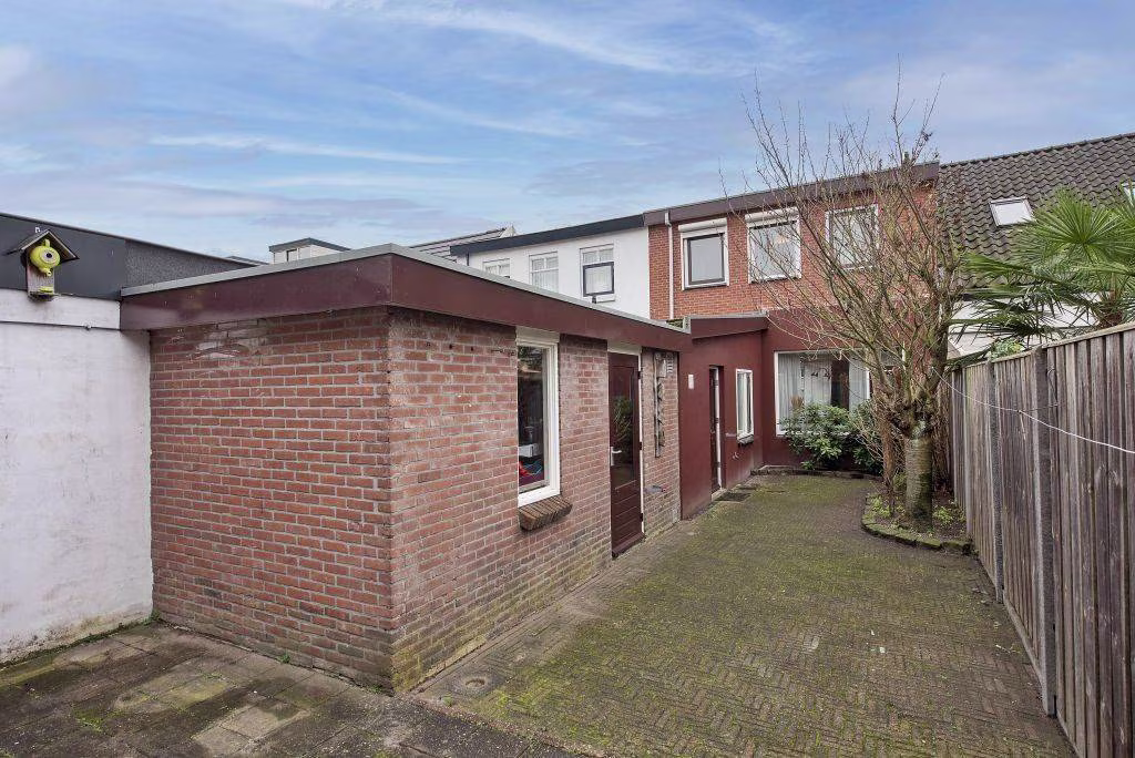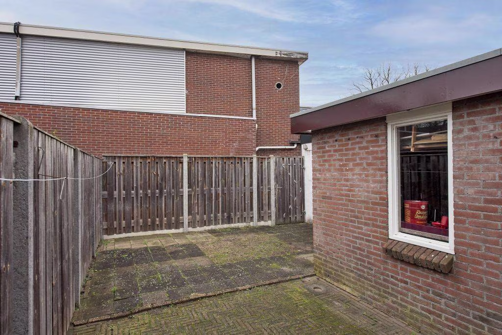 De achtertuin is diep en biedt voldoende privacy. Een fijne plek om buiten te zitten, te tuinieren of als speelruimte te gebruiken. Achterin staat een aangebouwde schuur, ideaal voor fietsen, gereedschap en opslag. Dankzij de achterom is de tuin ook van buitenaf goed bereikbaar.