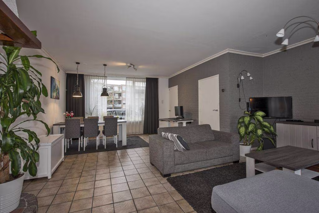 Bij binnenkomst valt direct op hoe ruim de woonkamer is opgezet. Aan de voorzijde staat nu de eettafel: een gezellige plek om samen te tafelen met vrij uitzicht op de speeltuin aan de overkant. De zithoek bevindt zich aan de achterzijde, waardoor je vanuit de woonkamer mooi uitkijkt op de tuin. De ruimte is slim ingedeeld en voelt daardoor verrassend royaal aan.