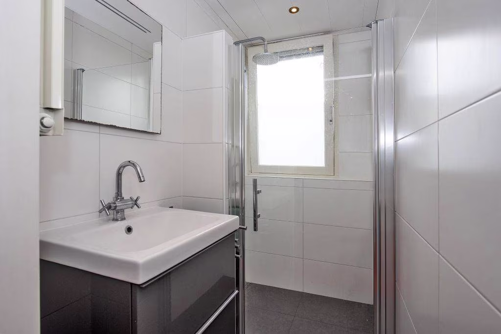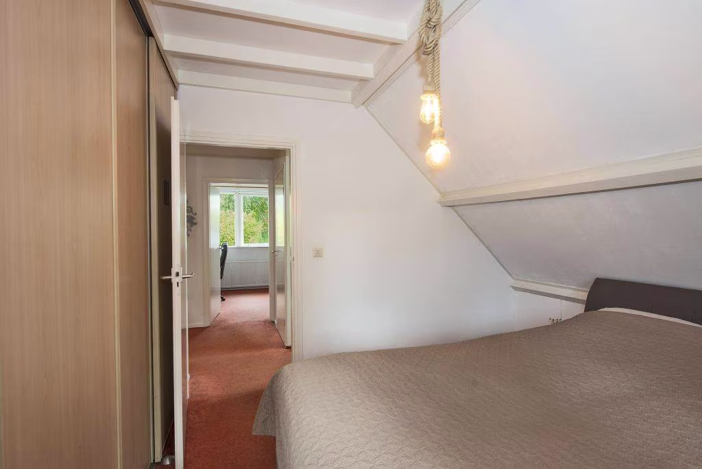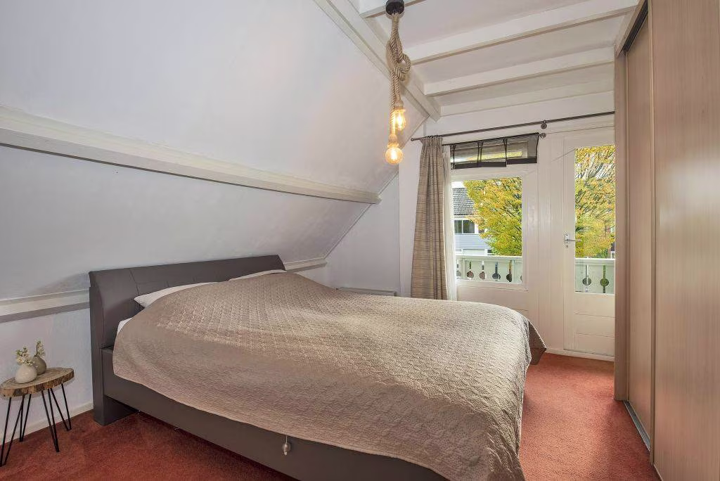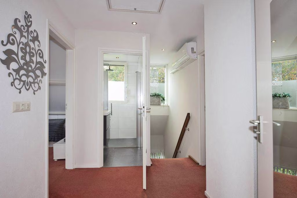 Op de eerste verdieping vind je vier ruime slaapkamers, waarvan drie met vaste kastenwanden en één met toegang tot het balkon. Verder is er een apart toilet, een moderne douche en een extra wastafelmeubel. De bergzolder, bereikbaar via een vlizotrap, biedt extra opbergruimte.