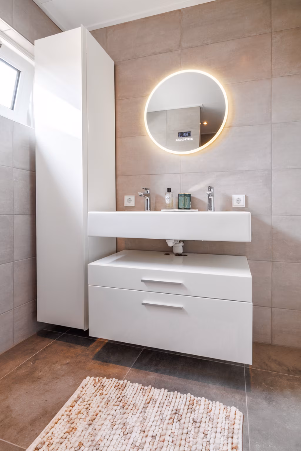 * kunststof kozijnen met dubbel glas & onderhoudsvriendelijke pvc-vloeren;