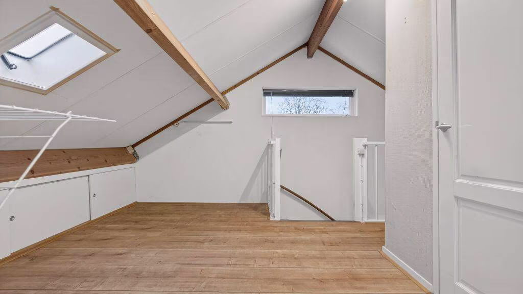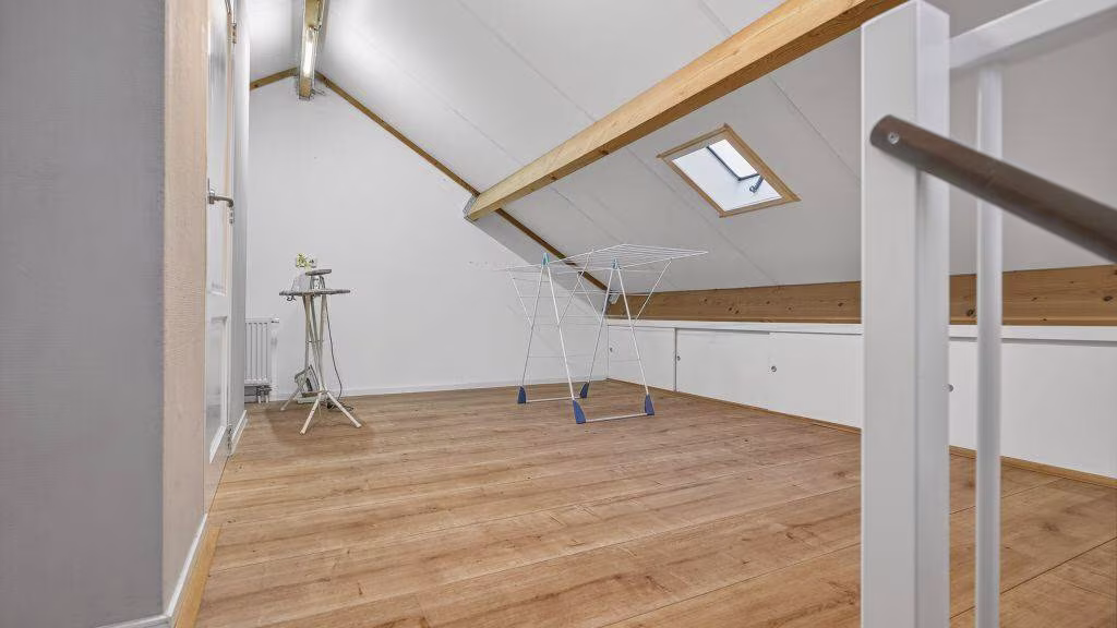 Middels vaste trap naar grote zolder met opstelplaats voor witgoedapparatuur en cv-ketel en prima ruimte voor het realiseren van extra kamer(s).