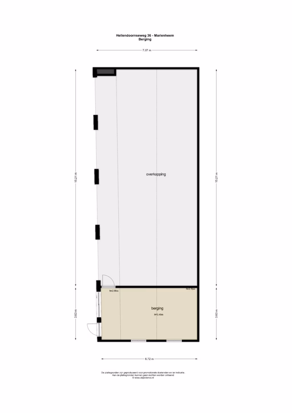 Aansluitend het achtergelegen terrein met hierop een multifunctionele berging en open (kap)schuur van circa 125 m², perceelgrootte 1.595 m².