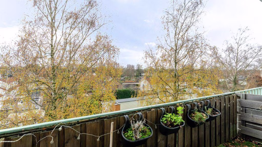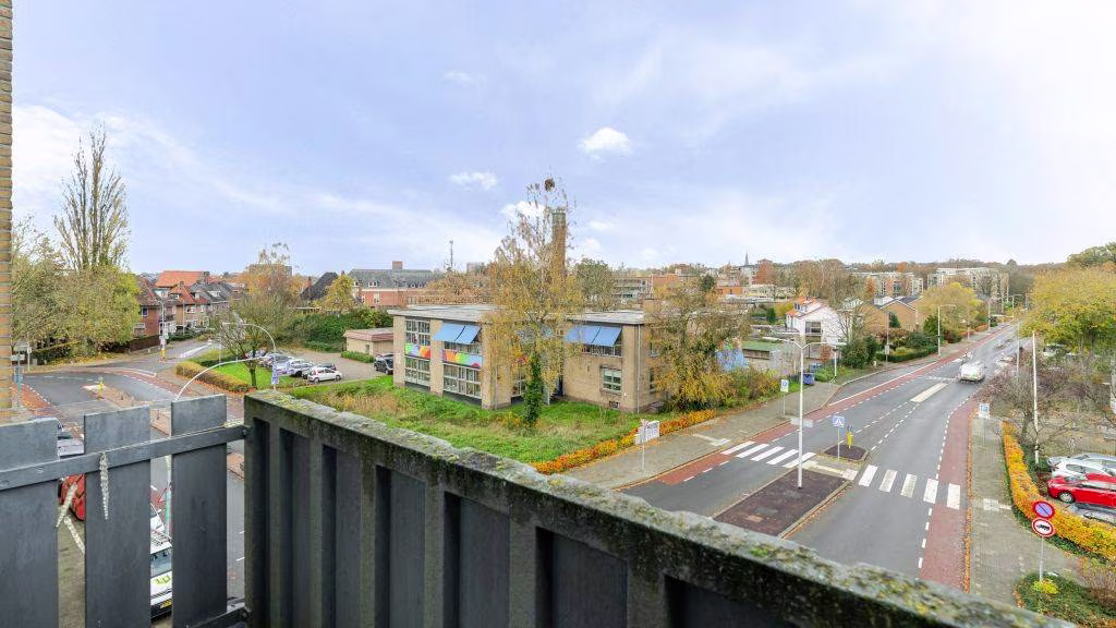 Gelegen aan de rand van het centrum, met vrij uitzicht, keurig afgewerkt 3-kamer appartement met dubbel balkon op het zuiden en het noorden en berging op de begane grond.