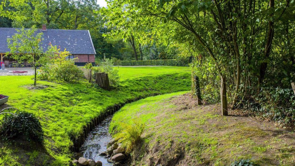 Een tweede uniek kenmerk is dat de kavel grenst aan de Esbeek. Een zacht meanderende beek die het erf een natuurlijke en serene rand geeft. Het water maakt de plek extra bijzonder, met altijd iets te zien: vogels, stroming en seizoenen!