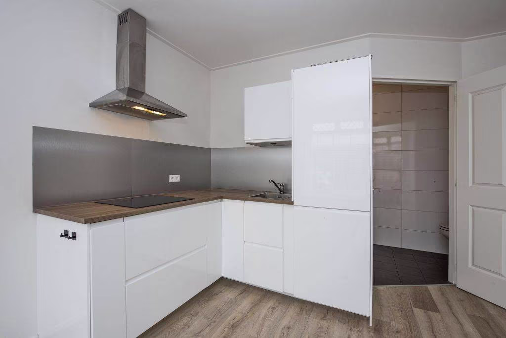 Appartement: entree, hal, sfeervolle en lichte woonkamer met een L-vormige open keuken voorzien van inbouwapparatuur, badkamer met toilet, douche en wastafel, separate opstelplaats voor de wasapparatuur, knusse slaapkamer.