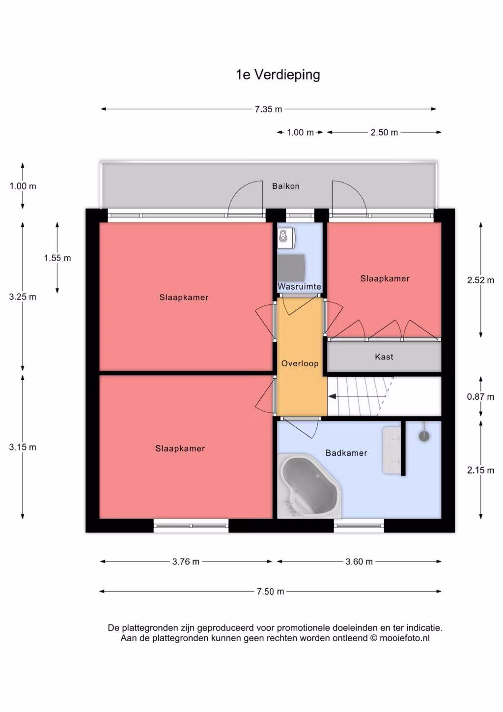 Eerste verdieping: overloop, drie slaapkamers, waarvan twee slaapkamers met doorloop naar het balkon en één slaapkamer voorzien van airco , riante badkamer voorzien van inloopdouche, ligbad, designradiator en dubbele wastafel, was- en stookruimte.