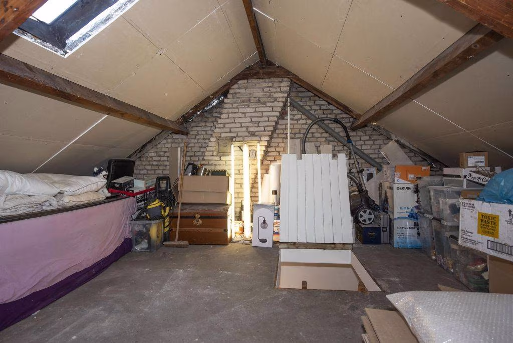 Tweede verdieping: beloopbare bergzolder met veel opslagmogelijkheid, bereikbaar via vlizotrap.