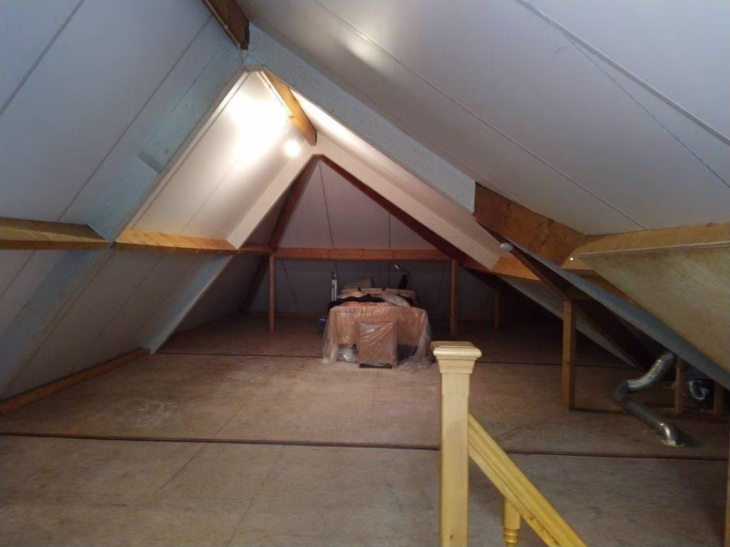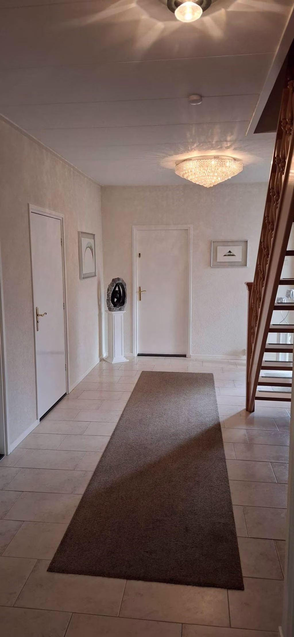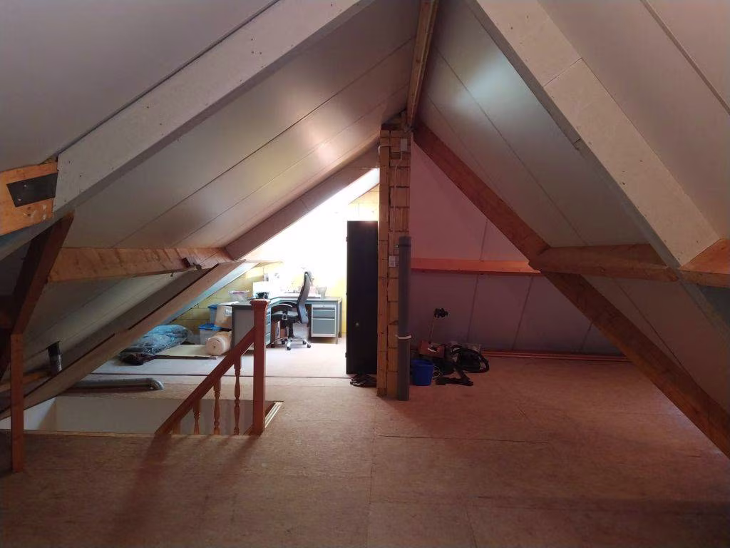Een vaste trap leidt naar de eerste verdieping, die nog geheel naar eigen wens is in te delen, bijvoorbeeld voor extra slaapkamers, een werkkamer of hobbyruimte.