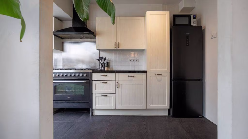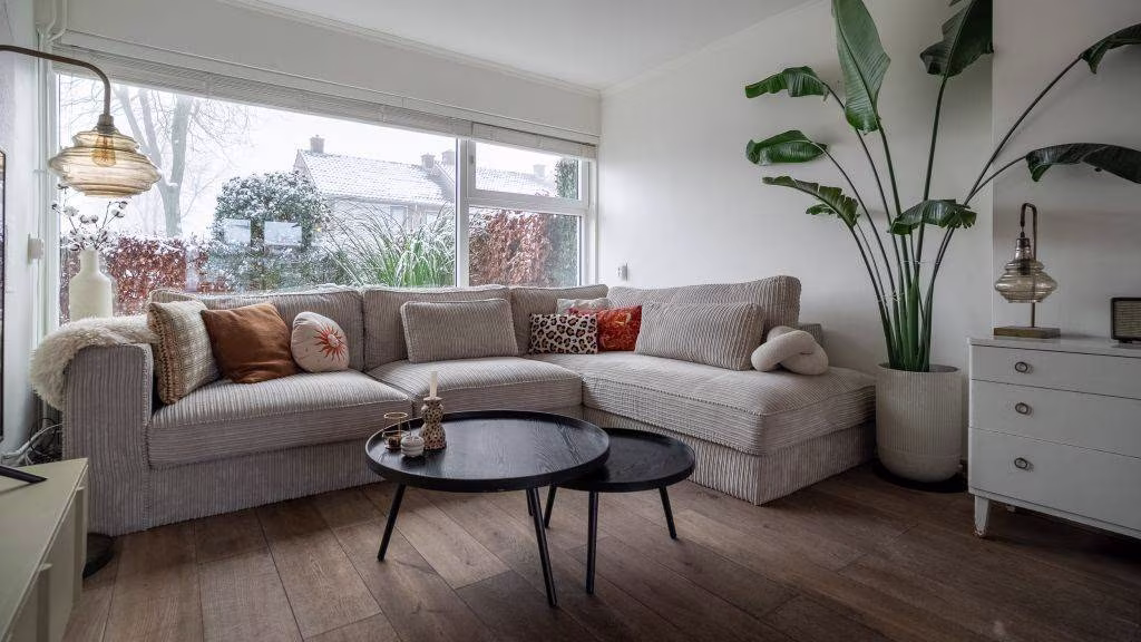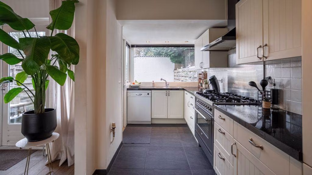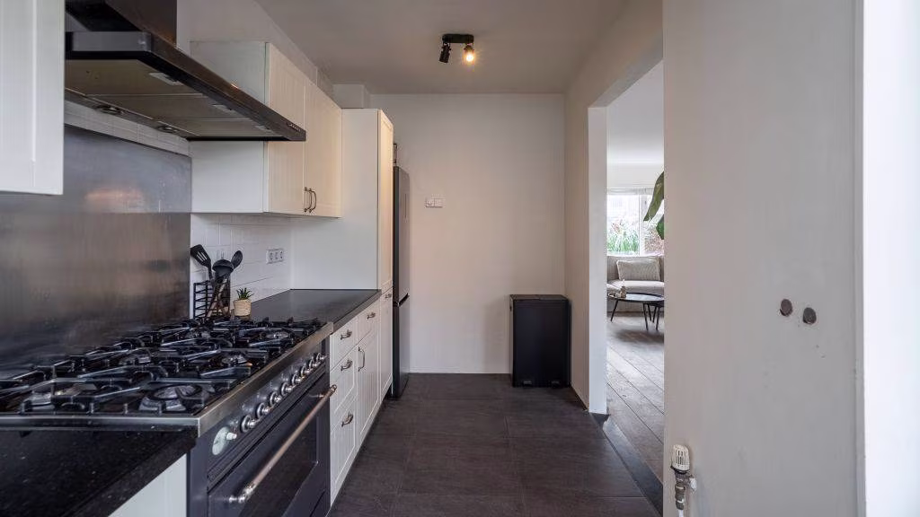 - Lichte woonkamer en tuingerichte nette keuken;