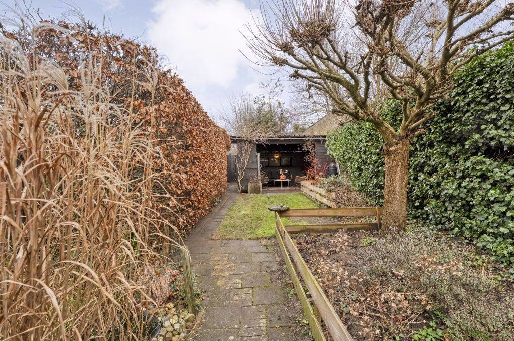 De 30 meter diepe tuin vormt een fijn verlengstuk van de woning en biedt het hele jaar door volop zon en privacy. Dankzij de twee bergingen, waarvan één met overkapping, is er voldoende ruimte voor opslag én een beschutte plek om heerlijk buiten te zitten. Met een achterom en een ruim terras voorzien van zonwering is de tuin bovendien praktisch en comfortabel ingericht.