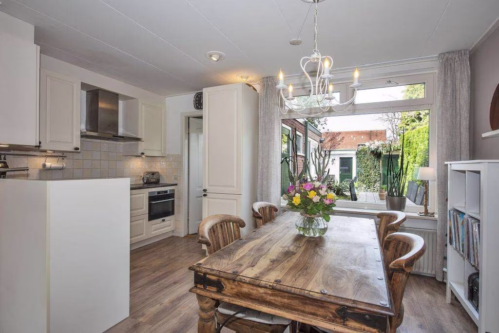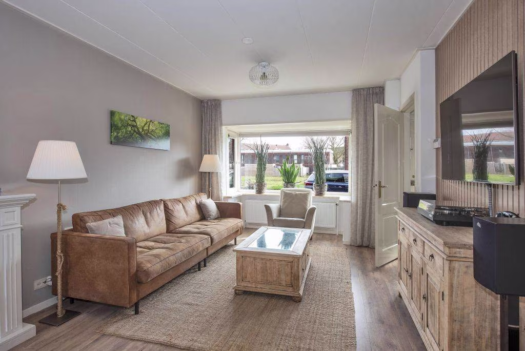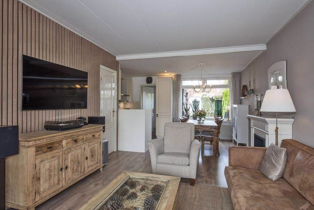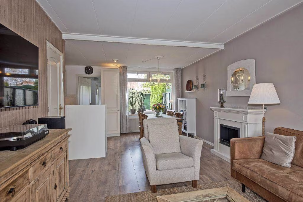 Bij binnenkomst voelt het direct goed. De woonkamer vormt het hart van het huis, een fijne leefruimte waar je eenvoudig een gezellige zithoek en eethoek combineert. De ruimte is prettig van formaat en biedt een warme en huiselijke sfeer.