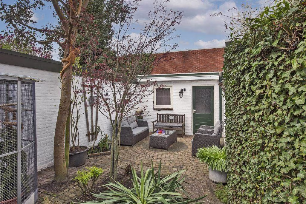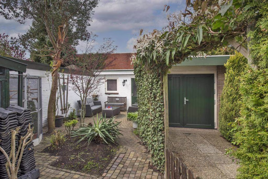 De achtertuin biedt een fijne plek om buiten te zitten en te genieten van rust en privacy. Achterin de tuin bevinden zich een garage en een berging die in elkaar overlopen, maar beide een eigen toegang hebben. De berging is bereikbaar vanuit de tuin, terwijl de garage via de achterom toegankelijk is. Ideaal voor het stallen van een auto, fietsen of het creëren van extra opslagruimte.