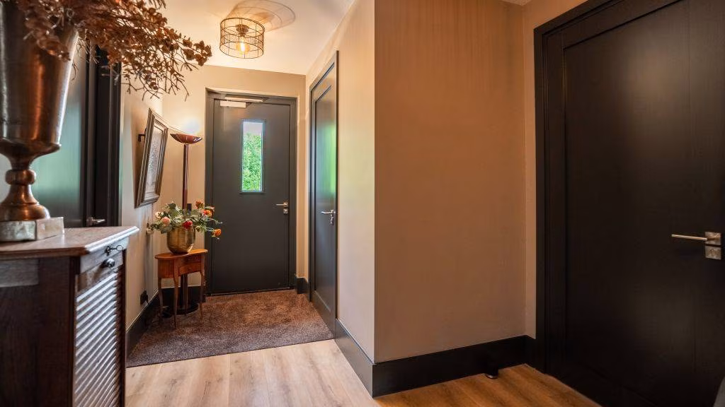U betreedt de woning via een royale entree, waar u direct het gevoel krijgt van luxe en comfort. Het separaat toilet is voorzien van een modern urinoir en smaakvolle afwerking.