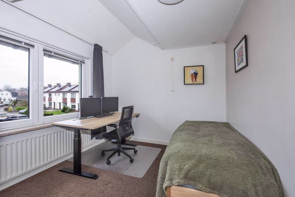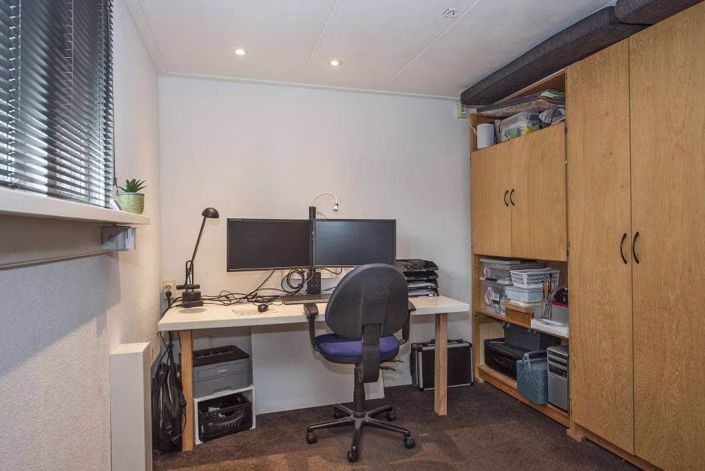 Achterin bevindt zich bovendien een aparte kantoorruimte, een praktische bonus voor wie thuis werkt of een hobby zoekt die wat extra ruimte vraagt. Ook de grote berging en het achterom maken de tuin compleet en bijzonder gebruiksvriendelijk. Aan de voorzijde van de woning ligt een eigen oprit met ruimte om je auto comfortabel op eigen terrein te parkeren.