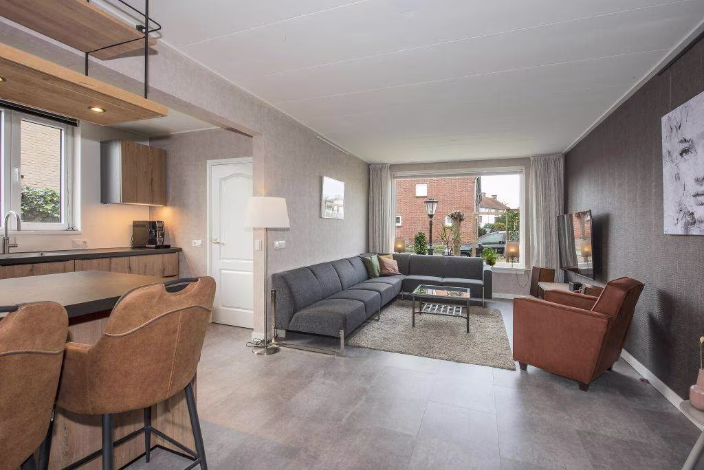 Aan de tuinzijde trekt de schuifpui direct de aandacht. Het licht valt hier volop naar binnen en hier kun je dan ook een fijne eethoek creëren. Een heerlijke plek om de dag te beginnen, te tafelen of te genieten van het uitzicht op de achtertuin. Loop je door richting de voorzijde van de woning, dan kom je in de woonkamer. Door het brede raam aan de straatzijde voelt deze ruimte verrassend ruim en aangenaam licht. Hier is voldoende plek voor een royale en gezellige zithoek.