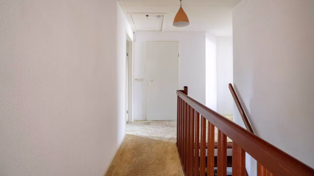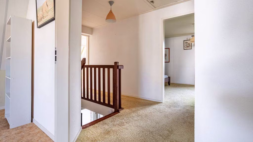 Overloop met toegang tot vier ruime slaapkamers en een nette badkamer voorzien van ligbad, douche, wastafel en tweede toilet.