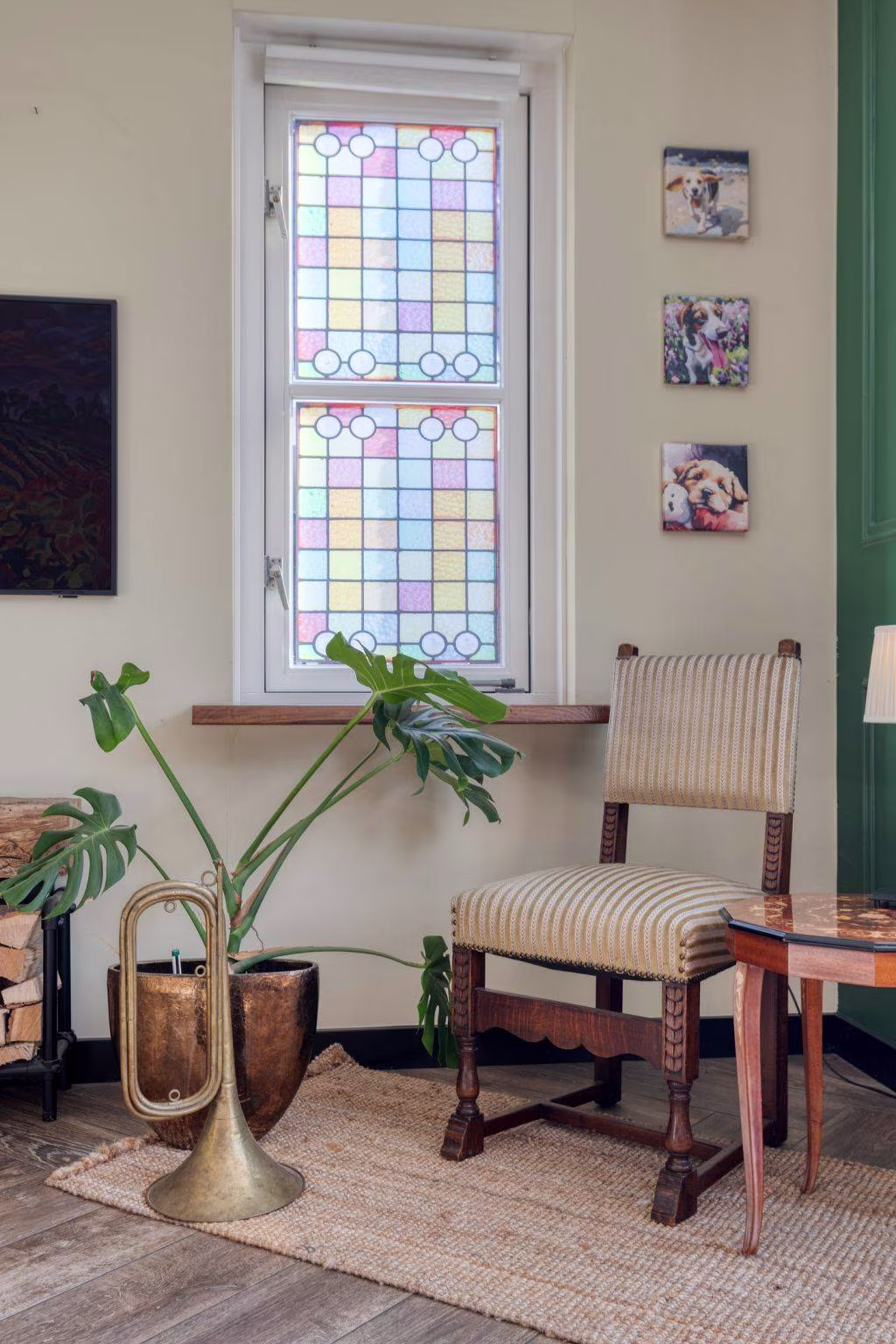 Begane grond: stijlvolle entree met open trapopgang en toiletruimte, royale, zonnige woonkamer met erker, semi-open woonkeuken met openslaande deuren naar terras. De keuken is in 2025 vernieuwd en v.v. luxe inbouwapparatuur.