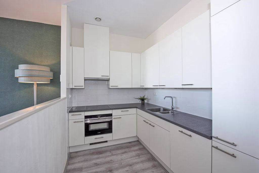Boven de binnenstad van Enschede, op de derde verdieping bevindt zich dit praktisch ingedeelde appartement. Bij binnenkomst via de entree word je direct verwelkomd door een functionele indeling. Zo vind je hier een handige opbergkast, het separate toilet en de toegang tot de living, twee slaapkamers en de badkamer. De woonkamer biedt een fijne leefruimte en dankzij de twee grote ramen valt er voldoende daglicht naar binnen. Als verlengstuk van de woonkamer heb je direct toegang tot de loggia, een inpandige buitenruimte waar je het hele jaar door kunt genieten van een kop koffie en een goed boek. De open keuken is voorzien van een standaard L-vormig keukenblok met strakke witte kasten en een donker werkblad, wat de ruimte een tijdloze uitstraling geeft. Dankzij de slimme indeling en het ruime aanbod aan kastruimte kun je al je kookspullen moeiteloos opbergen. De inbouwapparatuur, waaronder een oven, koelkast en inductiekookplaat, maakt het niet alleen een praktische, maar ook een fijne plek om te koken. Of je nu een snelle maaltijd bereidt of vrienden uitnodigt voor een gezellige avond, deze keuken is het hart van het appartement. De functionele badkamer beschikt over een dubbele wasbak, inloopdouche en toilet. Daarnaast heeft het appartement een eigen aparte ondergrondse berging voor het stallen van je fiets, opbergen van je gereedschap of andere spullen.