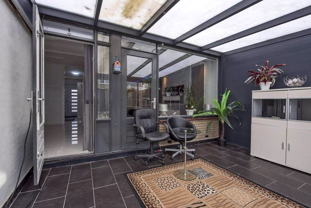 Bij binnenkomst valt direct de overzichtelijke indeling op. De woonkamer is licht en prettig van formaat, met voldoende ruimte voor een gezellige zithoek én een eethoek. Dankzij de serre aan de achterzijde wordt binnen en buiten op een fijne manier met elkaar verbonden. Een heerlijke plek om het hele jaar door te genieten van daglicht en uitzicht op de tuin.
