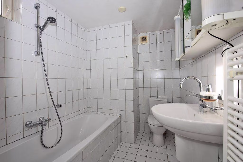 - Twee ruime (± 15 m²) slaapkamers, beide met vaste kasten en balkon;