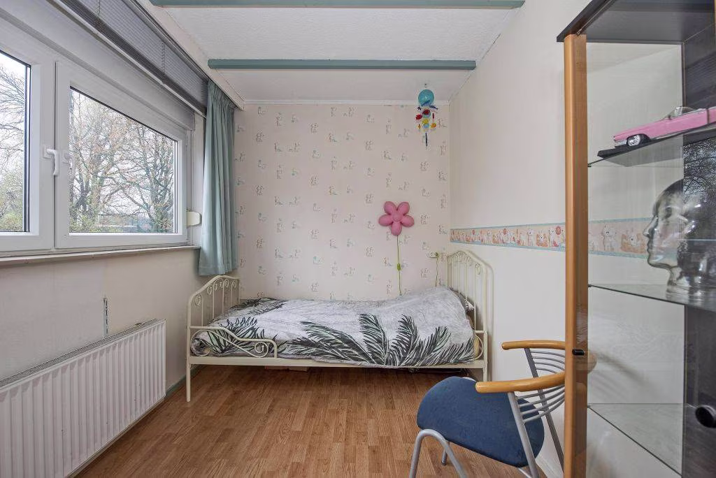 Op de eerste verdieping liggen drie slaapkamers die elk beschikken over brede ramen en vaste kasten. De grootste kamer heeft twee ingebouwde kasten en biedt volop ruimte voor een comfortabele indeling. De overige kamers kunnen naar wens worden ingericht als slaap- werk- of hobbykamer. De badkamer is afgewerkt met een combinatie van donkere vloertegels en lichte wanden met een stijlvol accent. De inloopdouche is uitgerust met een regendouche en handdouche. Het wasmeubel heeft praktische kastruimte en een royale spiegel. Dankzij het aanwezige raam blijft de ruimte fris en goed te ventileren.