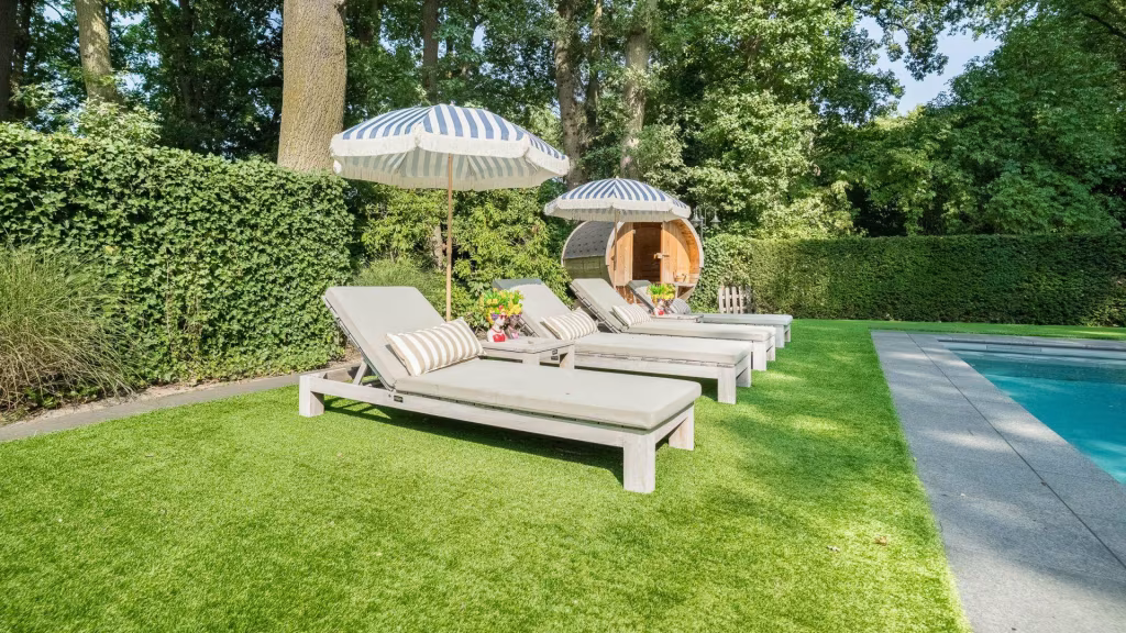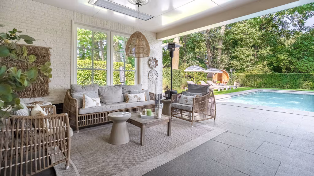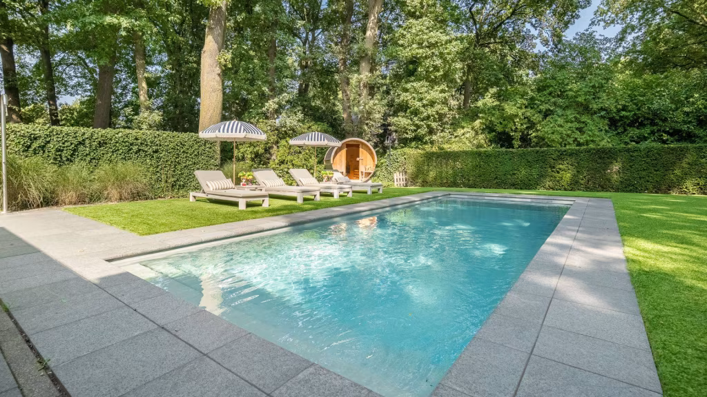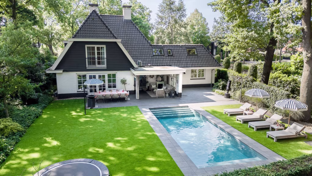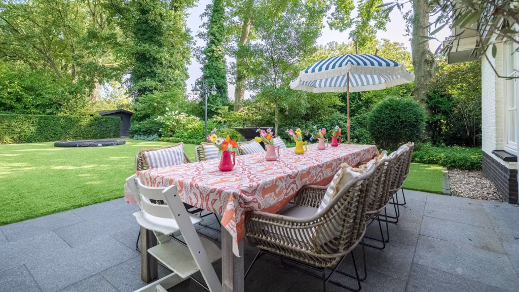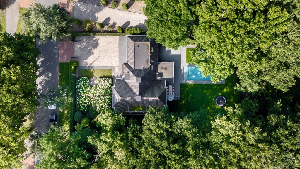 De tuin rondom de woning is een groene oase met maximale privacy. Het verwarmde buitenzwembad vormt samen met de veranda een fraai geheel – een verlengstuk van de leefruimte, perfect voor ontspannen avonden, zomerse diners en plezier met familie en vrienden. De ligging aan het bos én in een kindvriendelijke wijk maakt dit buitenleven compleet.