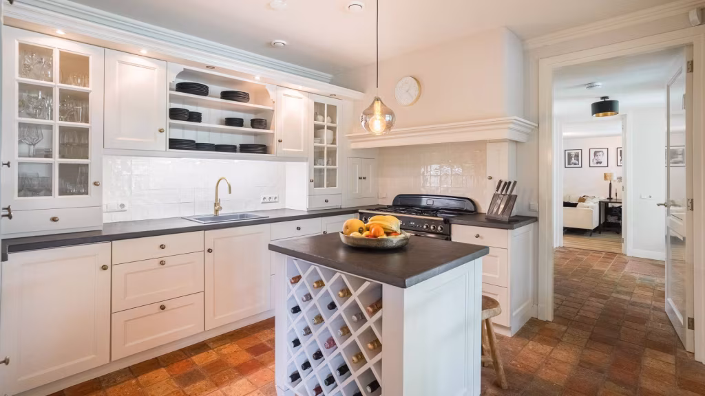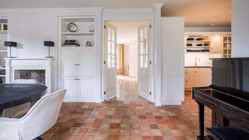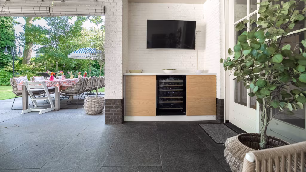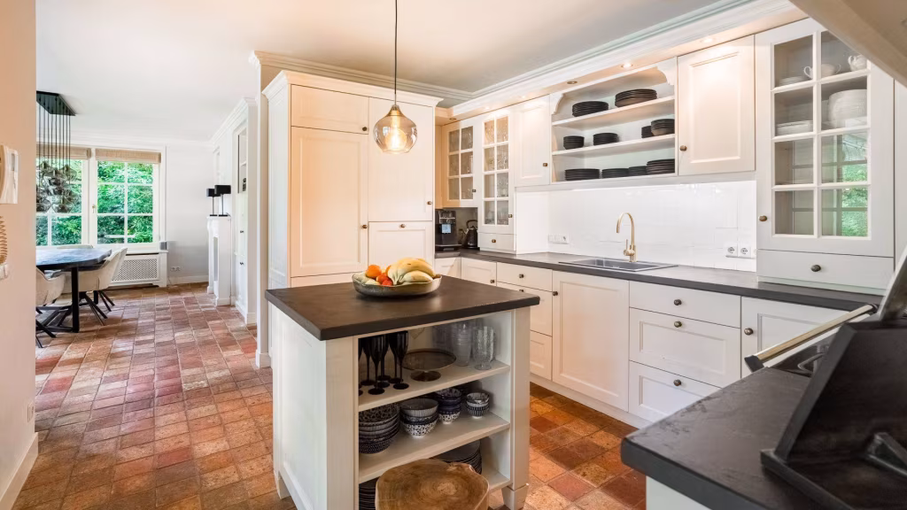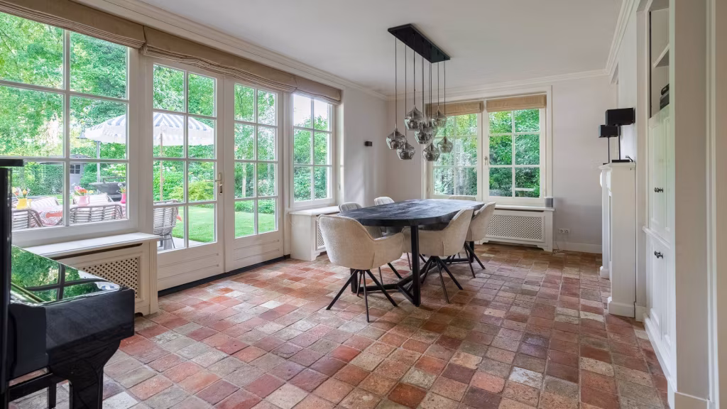 De luxe keuken is voorzien van hoogwaardige inbouwapparatuur en in uitstekende staat. Vanuit de schuifpui stapt u de veranda op, compleet met ingebouwde terrasverwarming. Vanuit hier loopt het buitenleven naadloos door: in het verlengde van de veranda ligt het verwarmde zwembad, waardoor u het hele jaar door kunt genieten van een echte vakantiesfeer in uw eigen tuin.