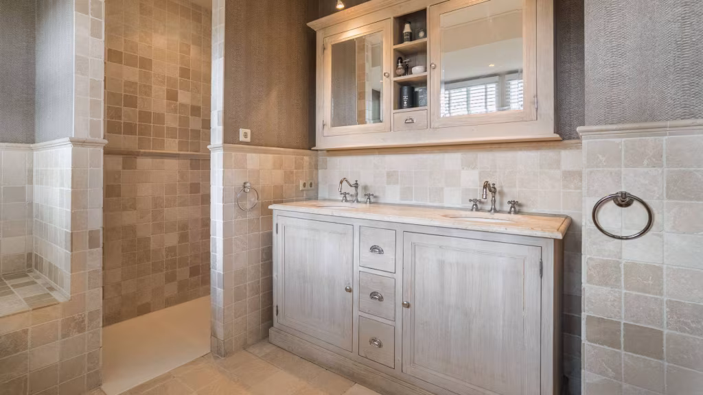 De bovenverdieping is ruim en voorzien van drie badkamers. Aan de voorzijde bevindt zich een slaapkamer met inloopkast en eigen badkamer (douche, toilet en wastafel). De ouderslaapkamer aan de achterzijde beschikt over een luxe en suite badkamer met dubbele wastafel, inloopdouche, ligbad en toilet, plus een royale inloopkast. Aansluitend ligt nog een derde vierde slaapkamer.