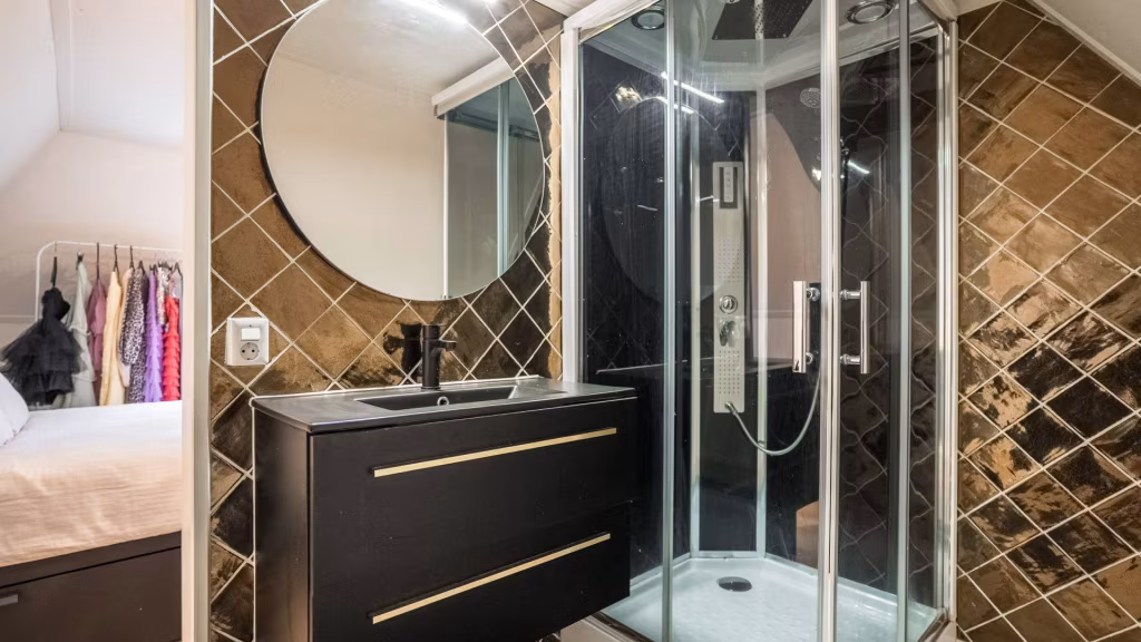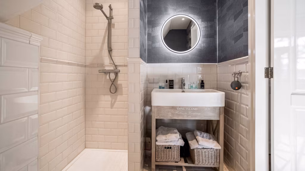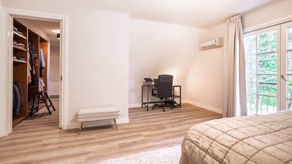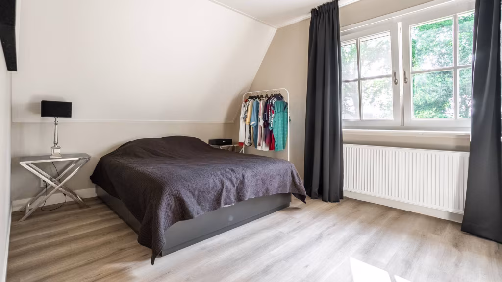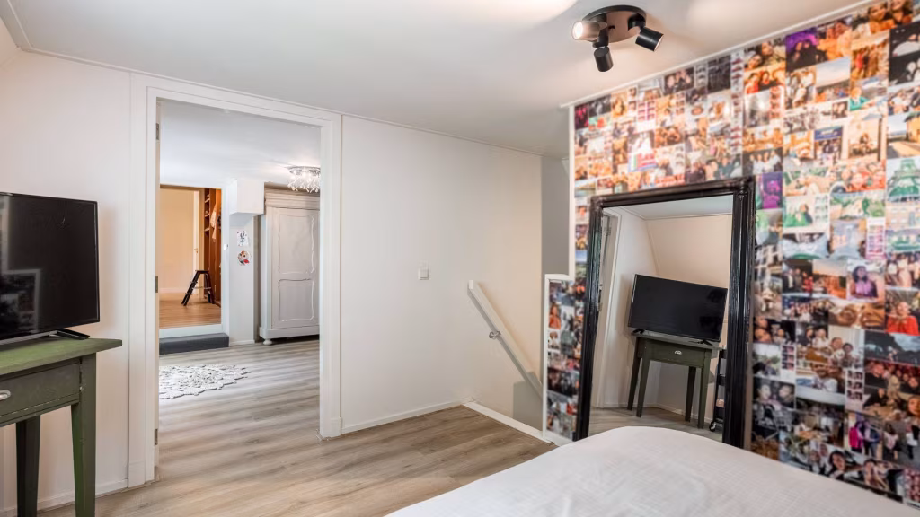 Via de tweede trapopgang vanuit de tv-kamer bereik je de derde en vierde slaapkamer. De vierde slaapkamer beschikt tevens over een eigen badkamer met douche en wastafel.